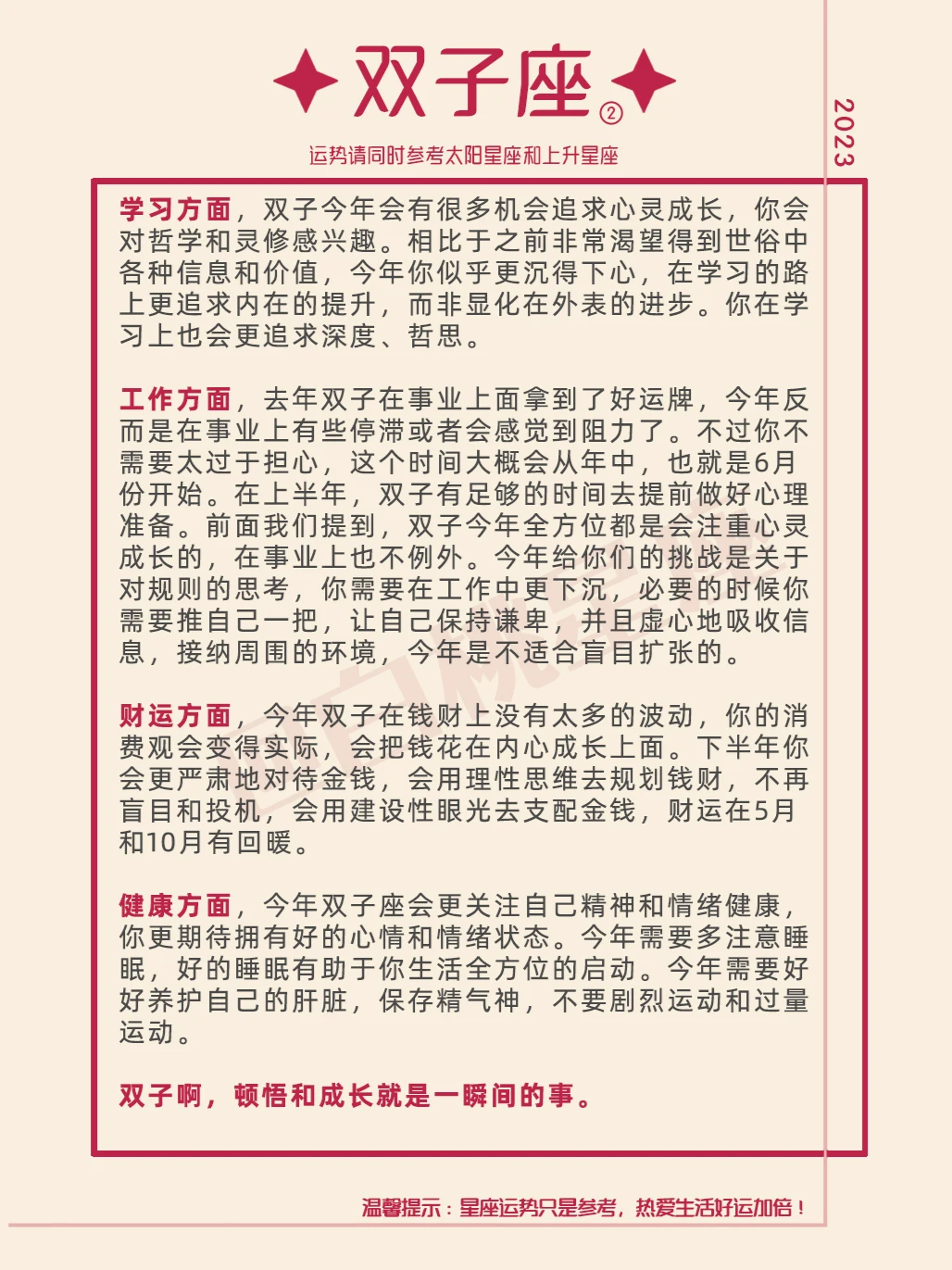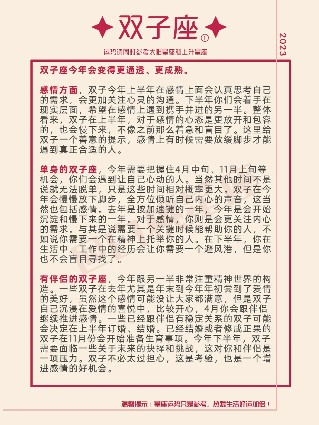 『白桃星座』双子座2023年运