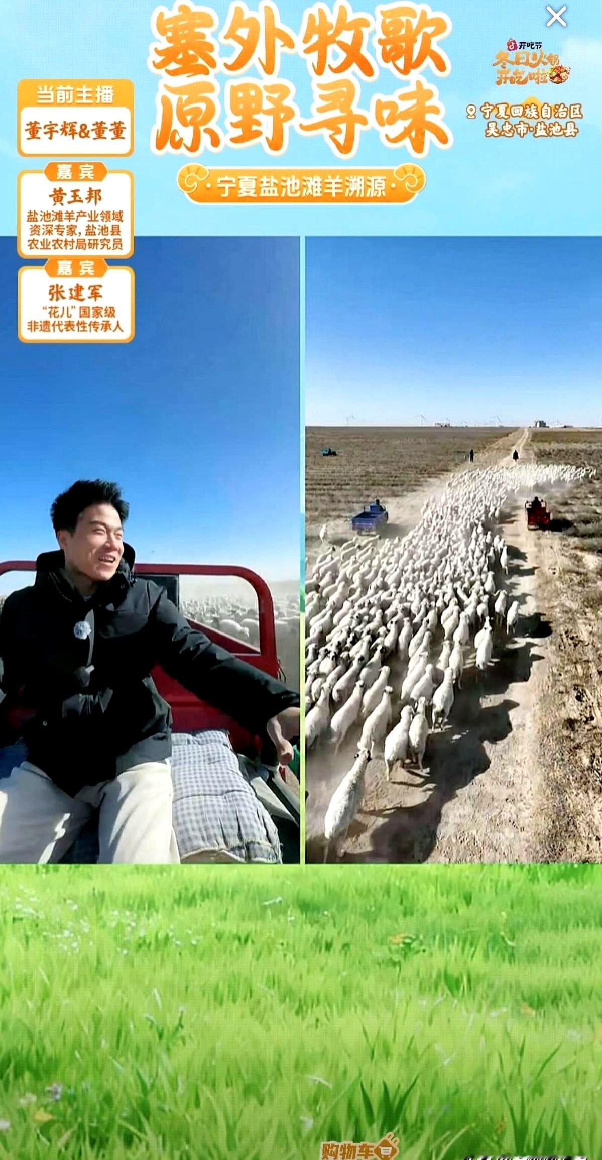 董宇辉开敞篷车赶羊,这直播有点东西。 这直播,这直播真是把人看乐了。董老师直接开上了敞篷越野车,在草原上赶羊,旁边还有董董帮忙,嘴里还哼着《喜羊羊与灰太狼》。这哪是卖货,简直是在拍户外真人秀,直播间里二十多万人就跟着看他俩把羊往羊圈里赶。 他这么干,目的很明显。把盐池滩羊的生长环境直接怼到你眼前,让你看到羊是在什么样的草地上跑。这种场景式带货,让你感觉自己不是在买一块肉,而是在分享一种田园生活。摄像团队在后面累得够呛跟着跑,说明这都不是随手拍拍,是正儿八经的内容制作。 画面里玩得正嗨,那边的商品链接就给你挂上来了。从赶羊的欢乐,无缝衔接到下单盐池滩羊的预售,整个过程特别丝滑。还说他和董董负责物流,这种亲力亲为的感觉,一下子拉近了和消费者的距离。 把卖货拍成了田园牧歌,这盐池滩羊能不香嘛。