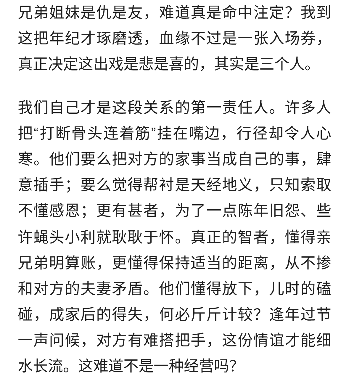 手足之间最大的遗憾,并非势同水火,而是这四件颇为现实的事。 兄弟姐妹...