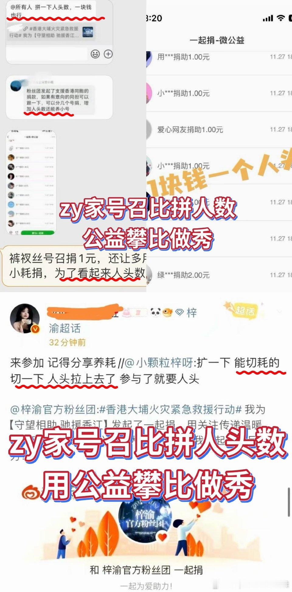 我不懂它们是什么意思,把公益拿来攀比人头数作秀,毫无同理心可言,窝朋粉丝都是这样的吗?