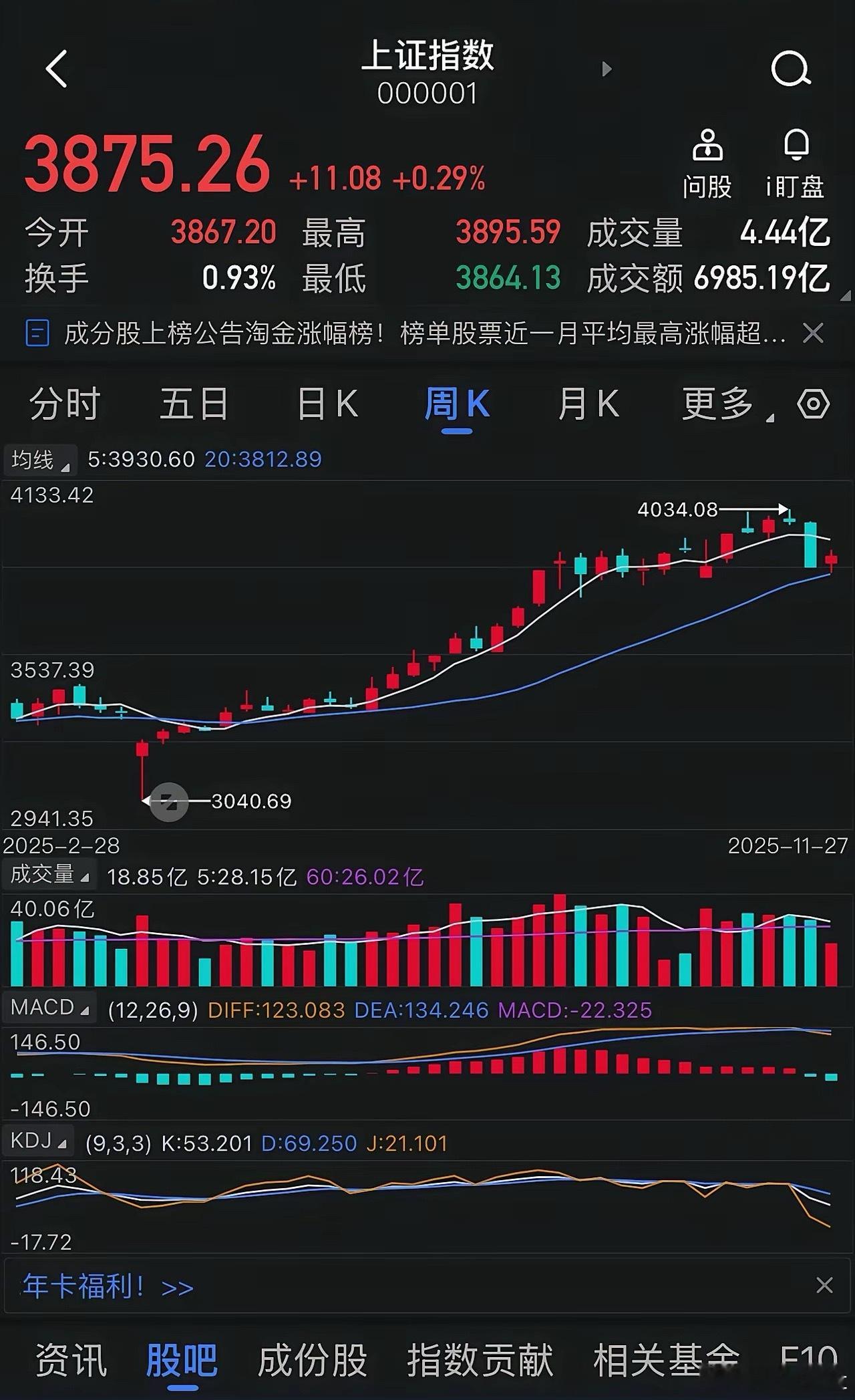 明天是本周和十一月份的最后一个交易日,如果没有特大利空,本周周K线收出阳线是大概率事件,但是月K线收阴已成定局,今晚上富时A50又是跳水,会不会预示着明天大A继续是一个调整态势。大家拭目以待。