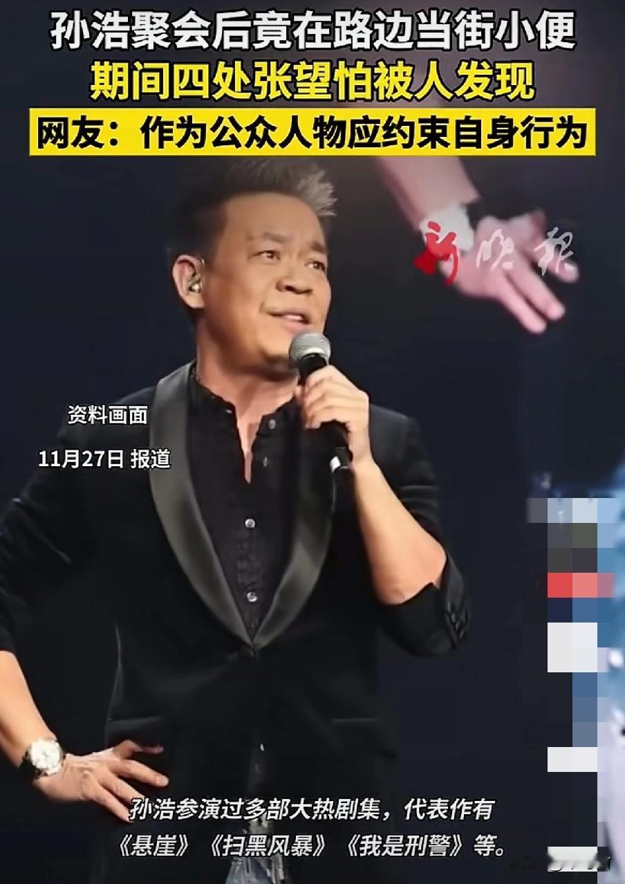 孙浩这事,谁家男人没干过啊?就算他是明星艺人,拍过几部火的电视剧,唱过红遍江南的民谣,但他也是个男人啊。 近日,孙浩被拍到,和杨坤,左小青等友人一起吃完饭出来,可能聊的太兴起了,忘了在饭店上厕所,就跑到路边释放了一把。 可万万没想到,被狗仔拍到了。说老实话,这种行为很多男人都干过的吧,普通人可以,公众人物就不行。就像抽烟一样,普通人抽烟大家都能接受,明星抽烟就是不良的影响,要被指责。 首先你都没把他们当成普通人了,非要给他们扣上“明星的光环”,所以说,都是宠出来明星了,私底下把他们也当成普通人就好了 很多网友分成两派,觉得他就是公众人物,一言一行都要作表率,不能丢人。另外一派就觉得,自己也做过的事,明星难道就不行了,人有三急,怎么了? 看来做明星也难啊,上个厕所被拍,路人还打个码,明星是怼脸拍呢!