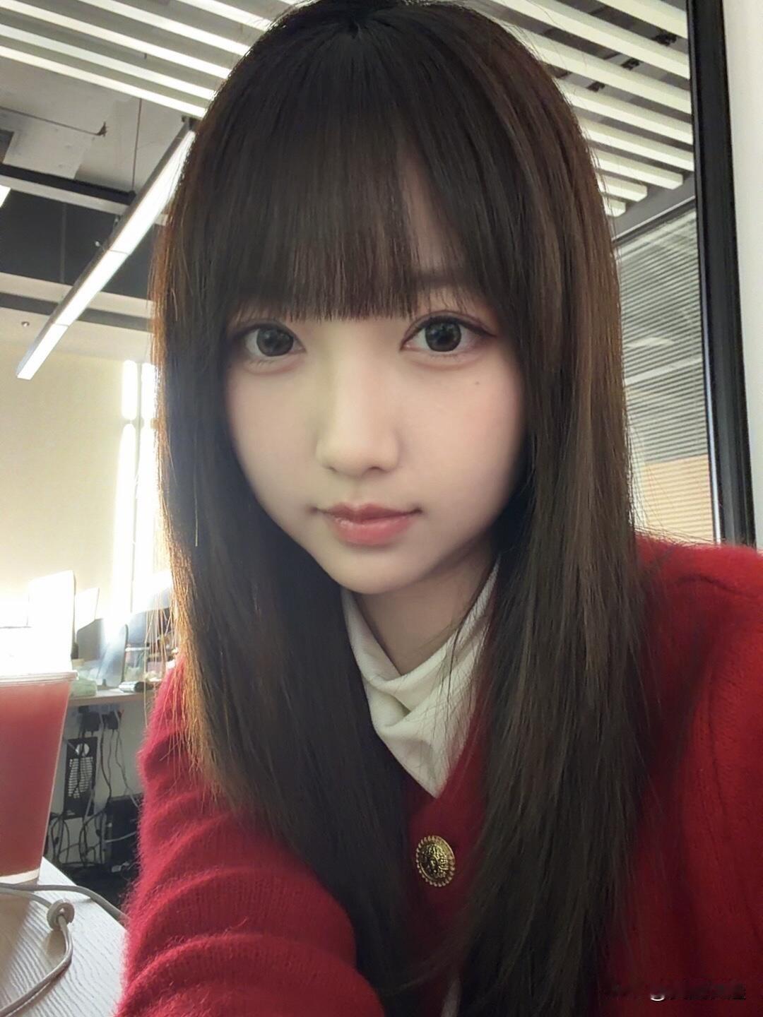 清纯甜美女孩!红衣美人照,镜中影自怜。