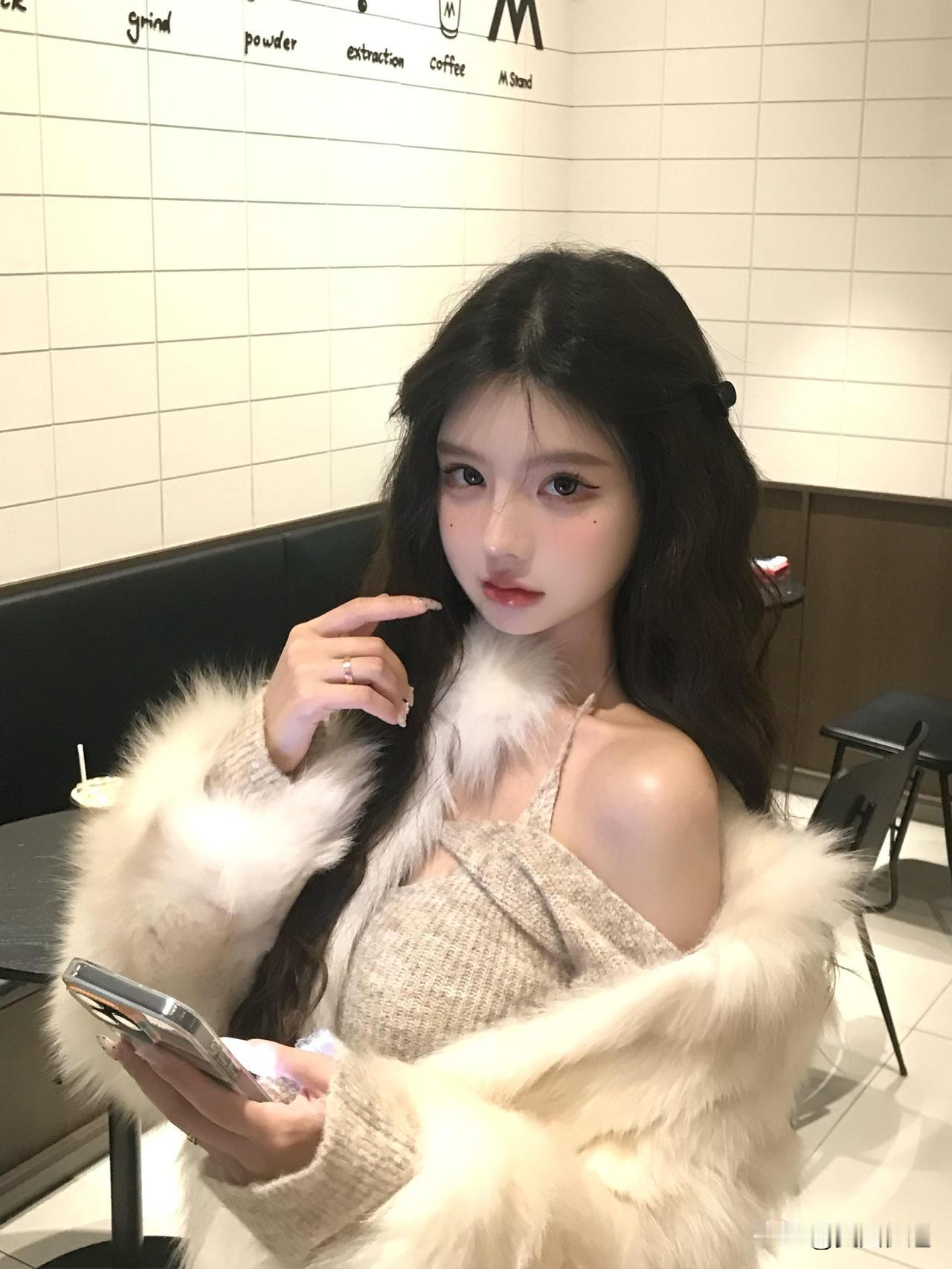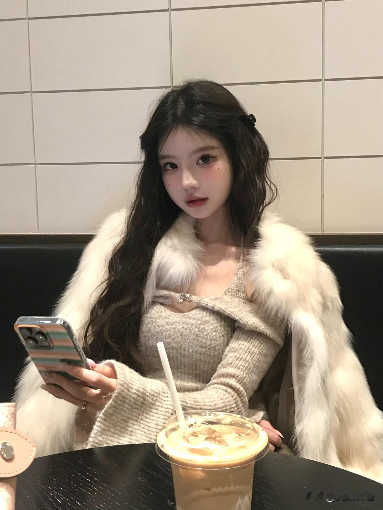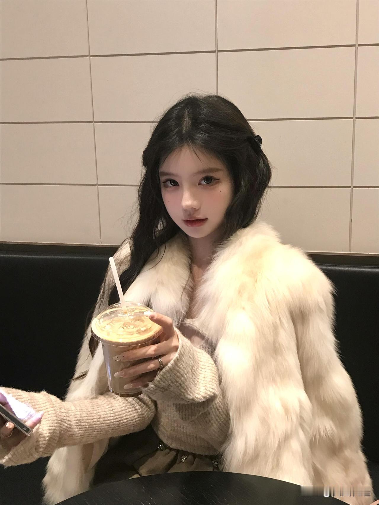 冬日暖阳下,咖啡与毛绒外套的完美搭配