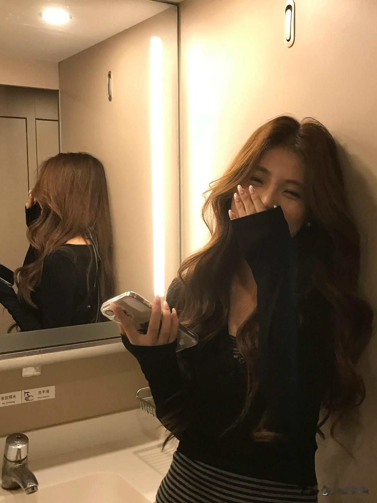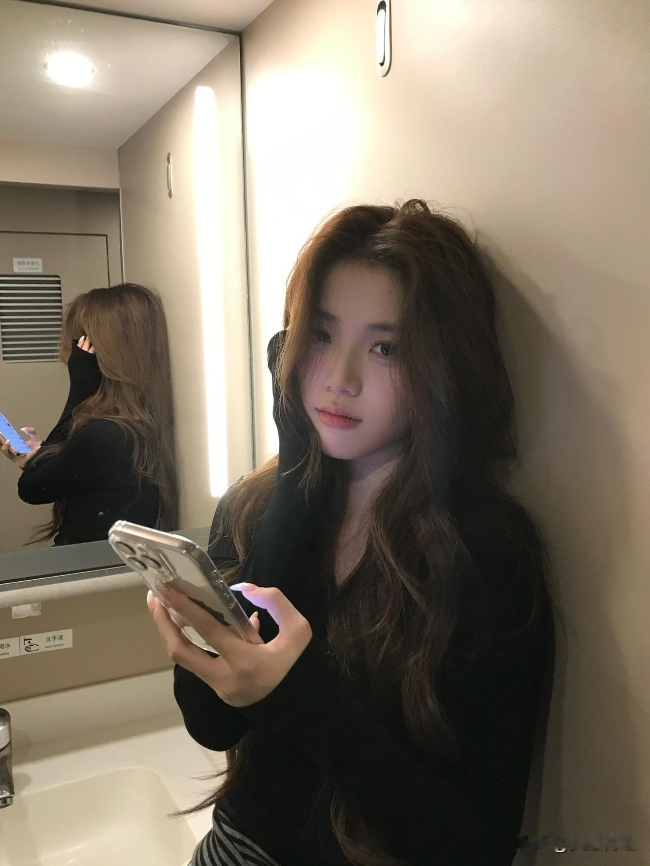 灯光下的少女,清纯甜美。 镜中倒影,手机相伴,享受独处时光。
