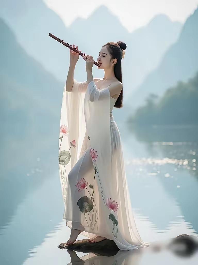 上联:滚滚江水波涛涌 下联:声声笛韵逐浪行