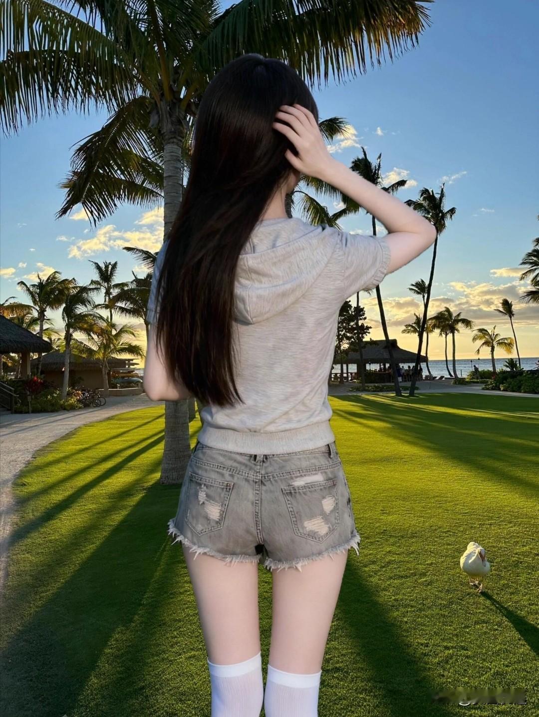 阳光洒在沙滩上,微风拂过棕榈树,少女背对镜头,享受海风与自由。