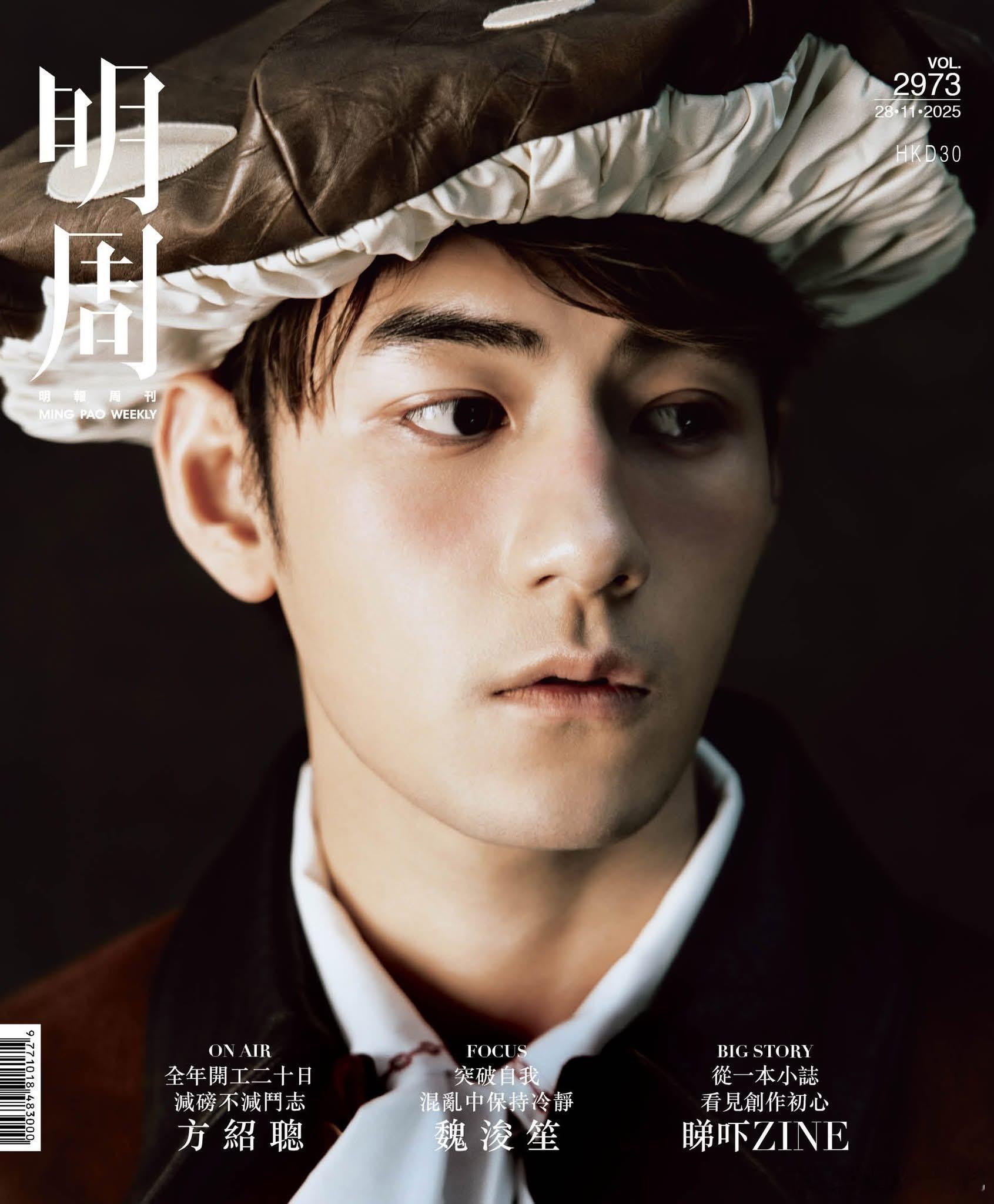 魏浚笙 | 明周封面27岁的魏浚笙(Jeffrey)2020年参加ViuTV恋爱综艺节目《调教你男友》为人认识,一开始是误打误撞拍了综艺节目《胶战》,之后算是正式入行,因有机会接拍剧集,如《IT狗》、《I SWIM》等,慢慢接触演戏。演技要慢慢磨练,其后他开始接拍电影,如《饭戏攻心2》、《焚城》及《红豆》等,慢慢开始有所领悟,「少少领悟一定有,进步都是自己讲,我觉得都有少少,因为你拍得多,慢慢就会知道,其实拍戏是忽然间由一个很混乱的状态,变到很安静,由一个一百分贝的音量,变到三、二、一,roll机,大家就做!以前的我有时会有些……又不是惊,是急!来喇,来喇,有时当你很急,你就会演得不自然,因为你追着一个节奏,所以我现在学会在一个混乱当中,找到一个平静,慢慢来,不用急,好似一句对白为什么要急着说,慢慢说都可以,现在开始领悟到,看着别人的行动再给反应。」他与不少前辈合作过,其中谢君豪算是他的演戏师傅,「其实我有跟君豪哥学演戏,我经常致电他聊天,他会教我怎样演绎得好一点。君豪哥很好,其实我们很老友,我可以致电他吹水两小时,我们什么都会说,他亦很愿意解答,完全不会觉得烦,我拍完后,他还会问我演成怎样,听到我说不错后,他也会说很好,有进步!」