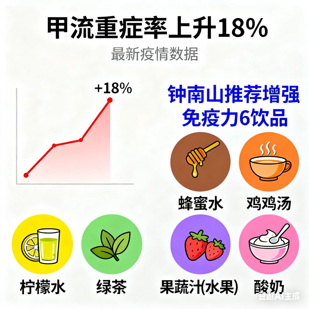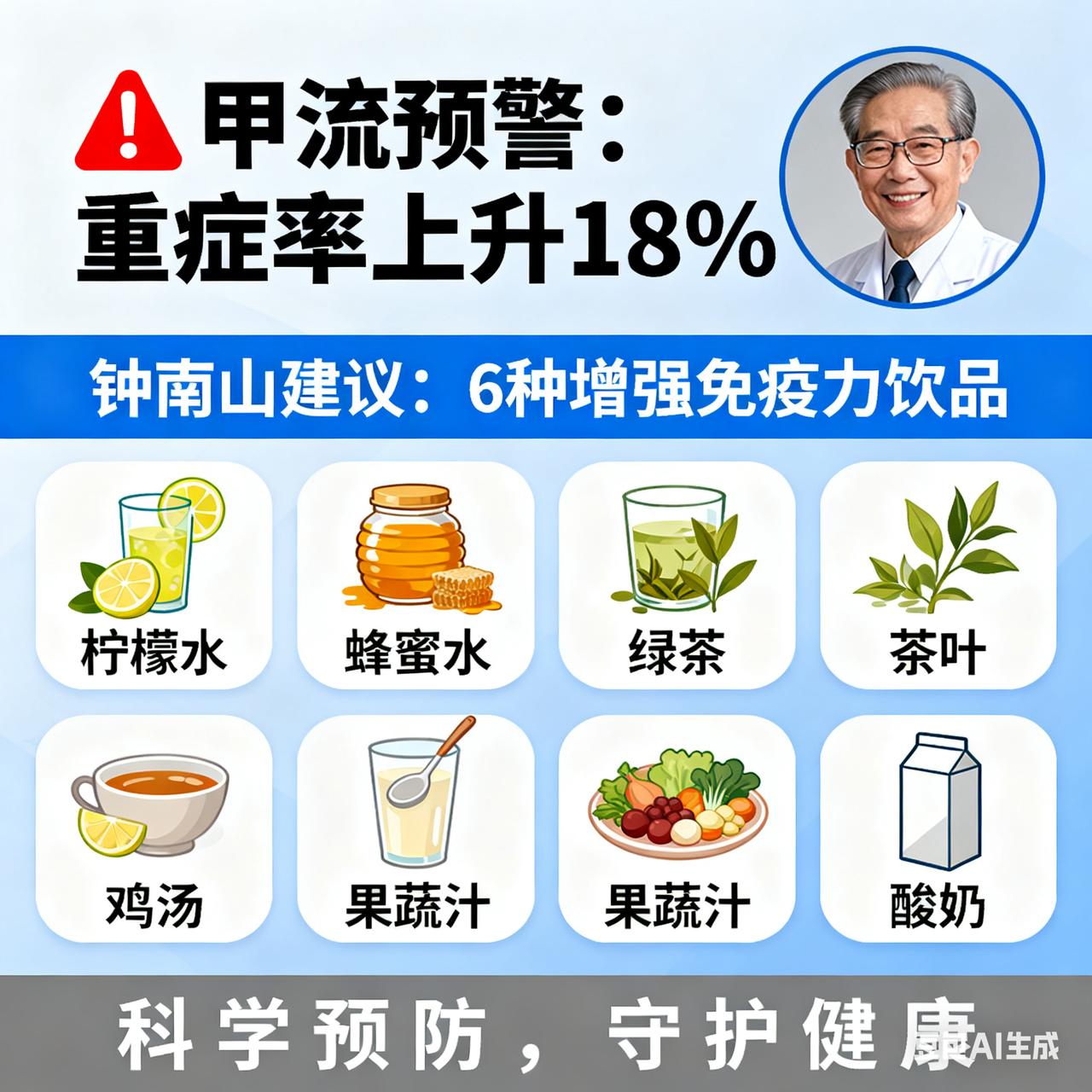 甲流重症率上升 18%!钟南山建议 6 种饮品增强免疫力 甲流死亡人数持续上涨?钟南山建议:少吃鸡肉,多喝6样增强免疫 近期,甲流疫情来势汹汹,全国多地甲流病例激增,部分重症患者不幸离世,引发社会广泛关注。面对这一严峻形势,钟南山院士给出建议:流感高发期,饮食需调整,少吃鸡肉,多喝6样增强免疫。 甲流高发期,为何要少吃鸡肉?钟南山院士指出,鸡肉虽为优质蛋白来源,但甲流病毒的自然宿主之一是禽类。在禽流感高发背景下,鸡肉若处理不当,如交叉污染、冷藏不当、加热不彻底,都可能给病毒留有可乘之机。此外,高蛋白、高脂肪的鸡肉,在感染期间消化会加重身体负担,削弱免疫系统的“火力”。 那么,该多喝哪6样来增强免疫呢? 一是深绿色蔬菜,如菠菜、油菜,富含叶酸、维生素C和铁,能让免疫细胞活力十足。二是菌菇类,香菇、金针菇含有β-葡聚糖,是免疫细胞的“训练教官”。三是坚果和种子,核桃、杏仁富含维生素E和锌,是抗氧化“主力军”。四是深海鱼类,三文鱼、沙丁鱼富含DHA和维生素D,能“调校”免疫反应。五是酸奶或含活性菌发酵乳制品,能改善肠道微生态环境,让免疫系统更有底气。六是豆类制品,豆腐、豆浆提供优质蛋白,不带来肉类潜在风险。 面对甲流,我们需保持警惕,但无需过度恐慌。除了饮食调整,及时接种流感疫苗、保持良好个人卫生习惯、充足睡眠、适度运动,也是增强免疫力、预防甲流的有效手段。让我们从日常点滴做起,守护自己和家人的健康。