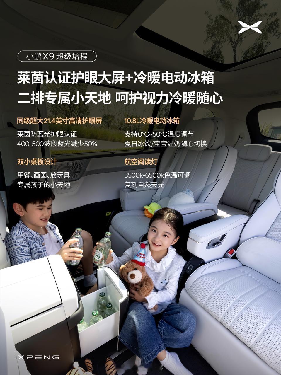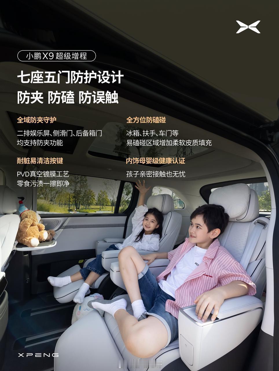 今天发现原来小鹏X9超级增程对儿童也做了不少细节设计,带来了“5大儿童友好配置”大空间+二排过道,车门娱乐屏防夹、冰箱扶手防磕碰设计,双重主动降噪+双层隔音,儿童友好上车入座,还有护眼屏、阅读灯这些健康设计等等...X9这次确实考虑得很周到了,作为家庭用车这些细节其实也是很容易吸引用户的。小鹏X9超级增程首发5大儿童友好配置小鹏X9大v聊车