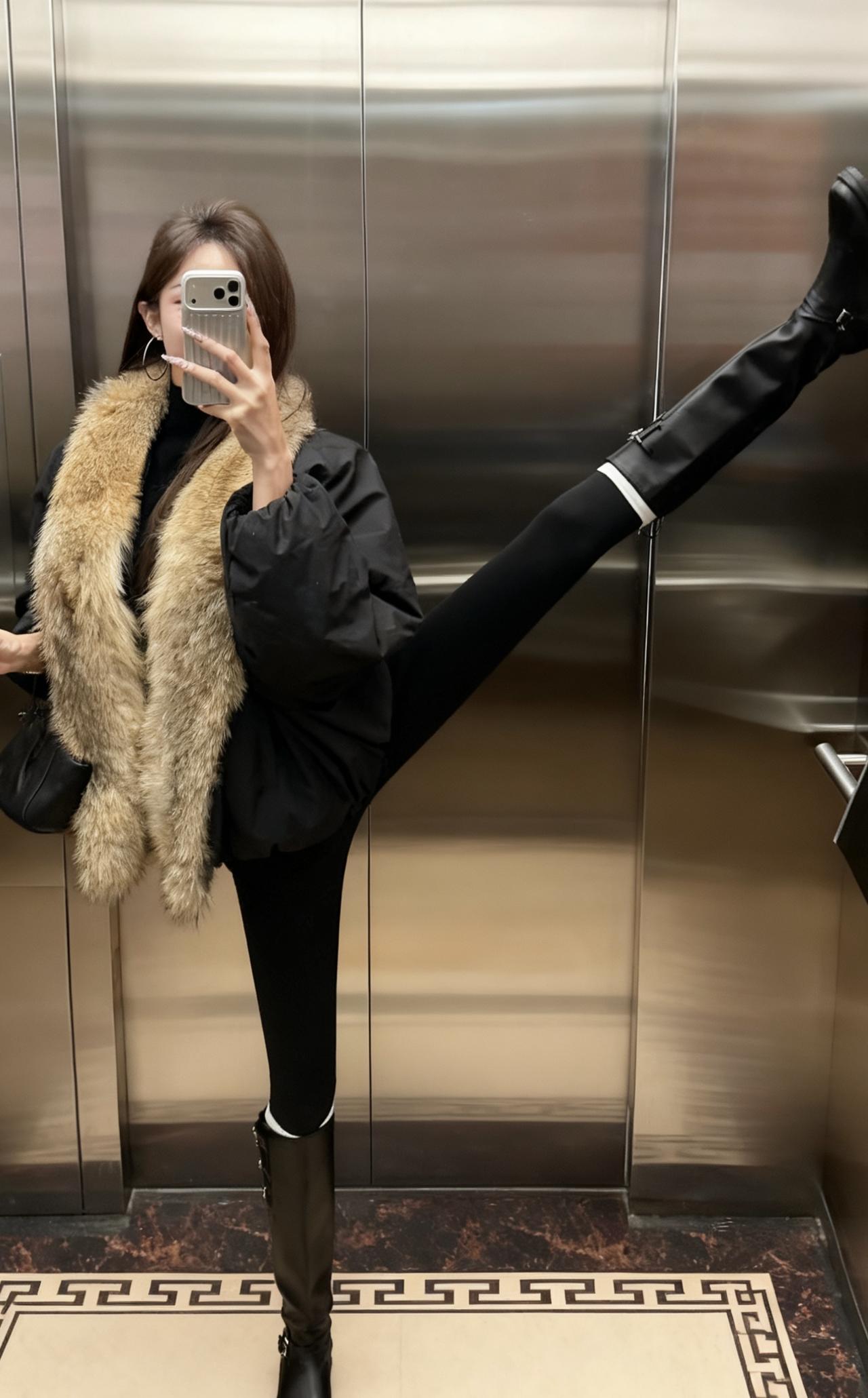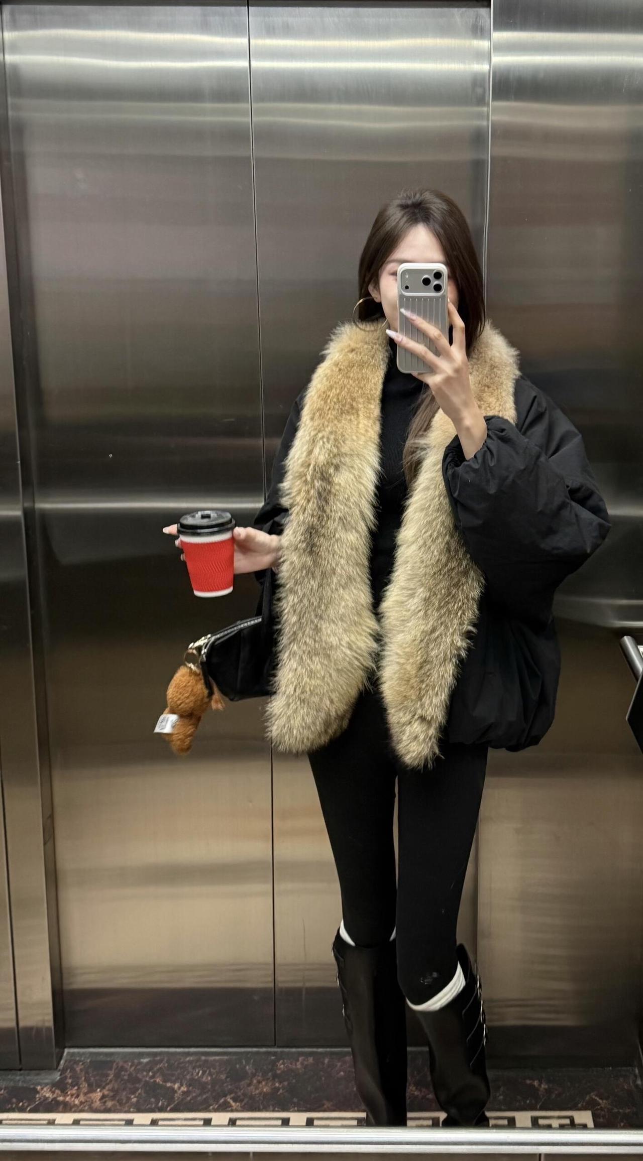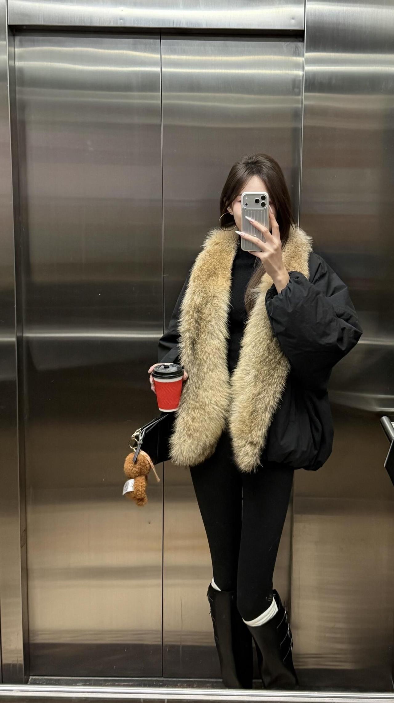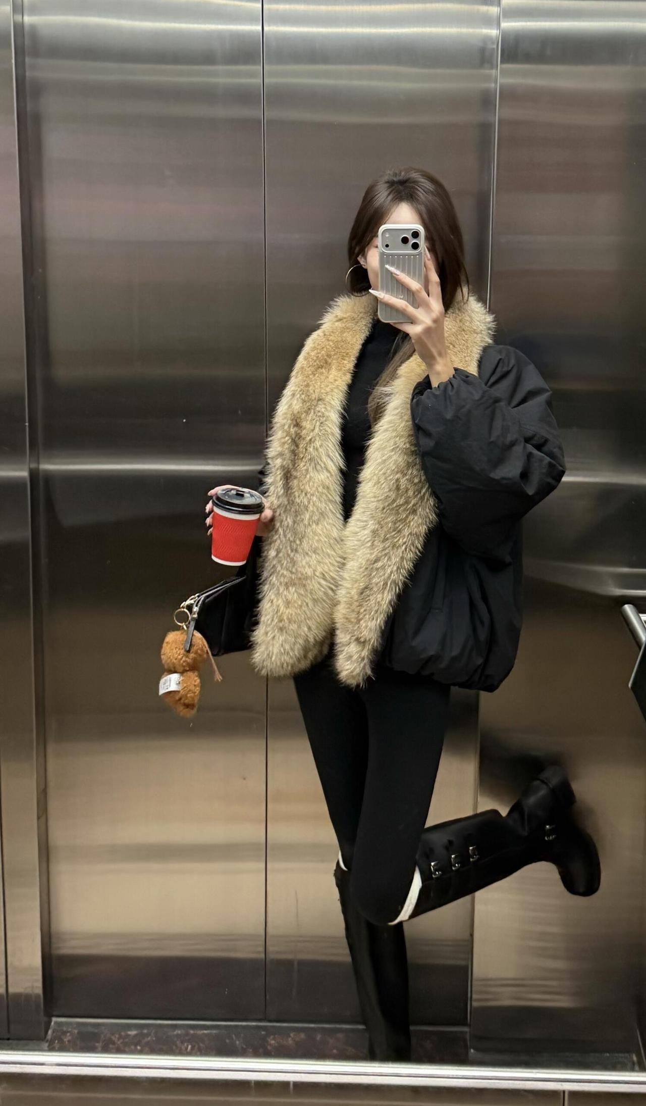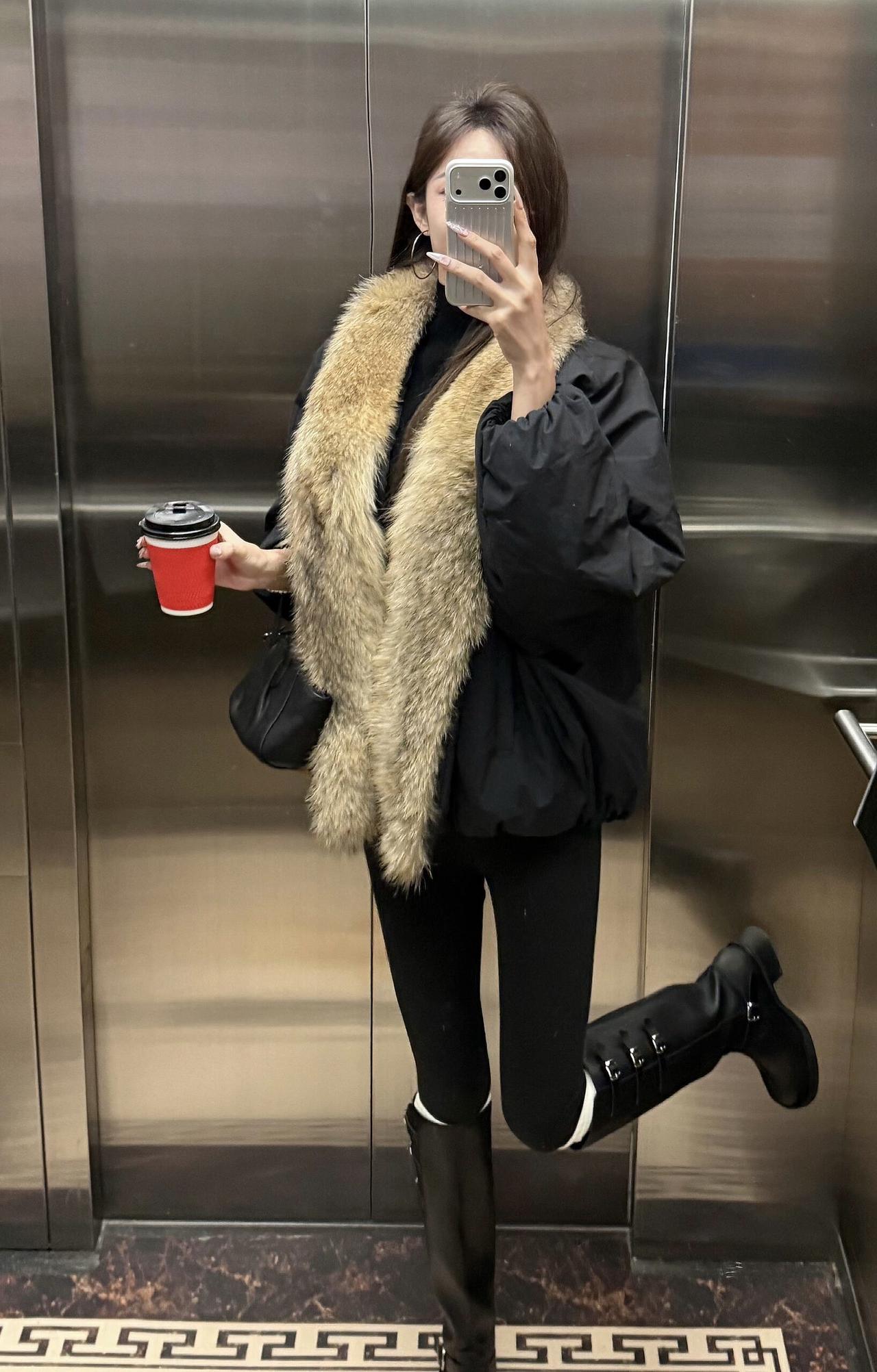 今日推荐简约高级的冬日休闲风, 穿搭细节: 黑色蓬松外套+大毛领:保暖又显贵气,毛领弱化了黑色的沉闷,增加了冬日氛围感; 内搭黑色高领+厚黑+长靴:all black的基础款显瘦又利落,长靴和紧身裤的组合还能拉长腿部线条。 小配饰简约单品做点缀,让整体造型更日常松弛。 适合场合: 日常出逛街、写字楼通勤、轻社交场合(朋友下午茶、短途约会):风格松弛不刻意,气质刚好。 ps:厚黑真的是冬日必备单品,真的是什么都能搭,怎么搭都好看。