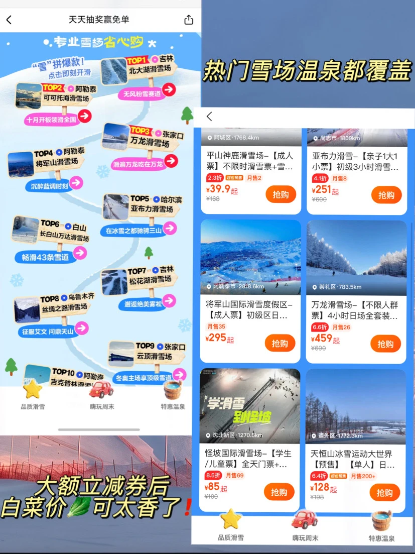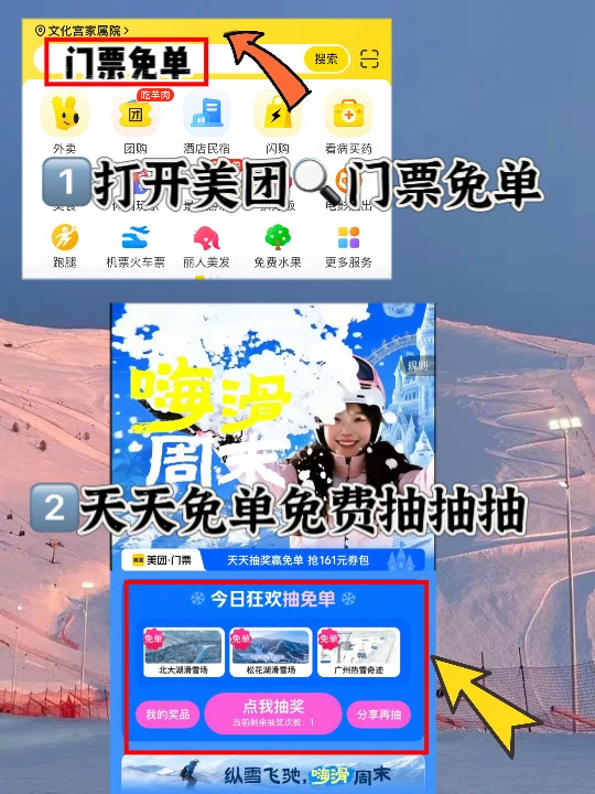 ❄️滑雪/温泉天天抽免单,免费抽无套路!