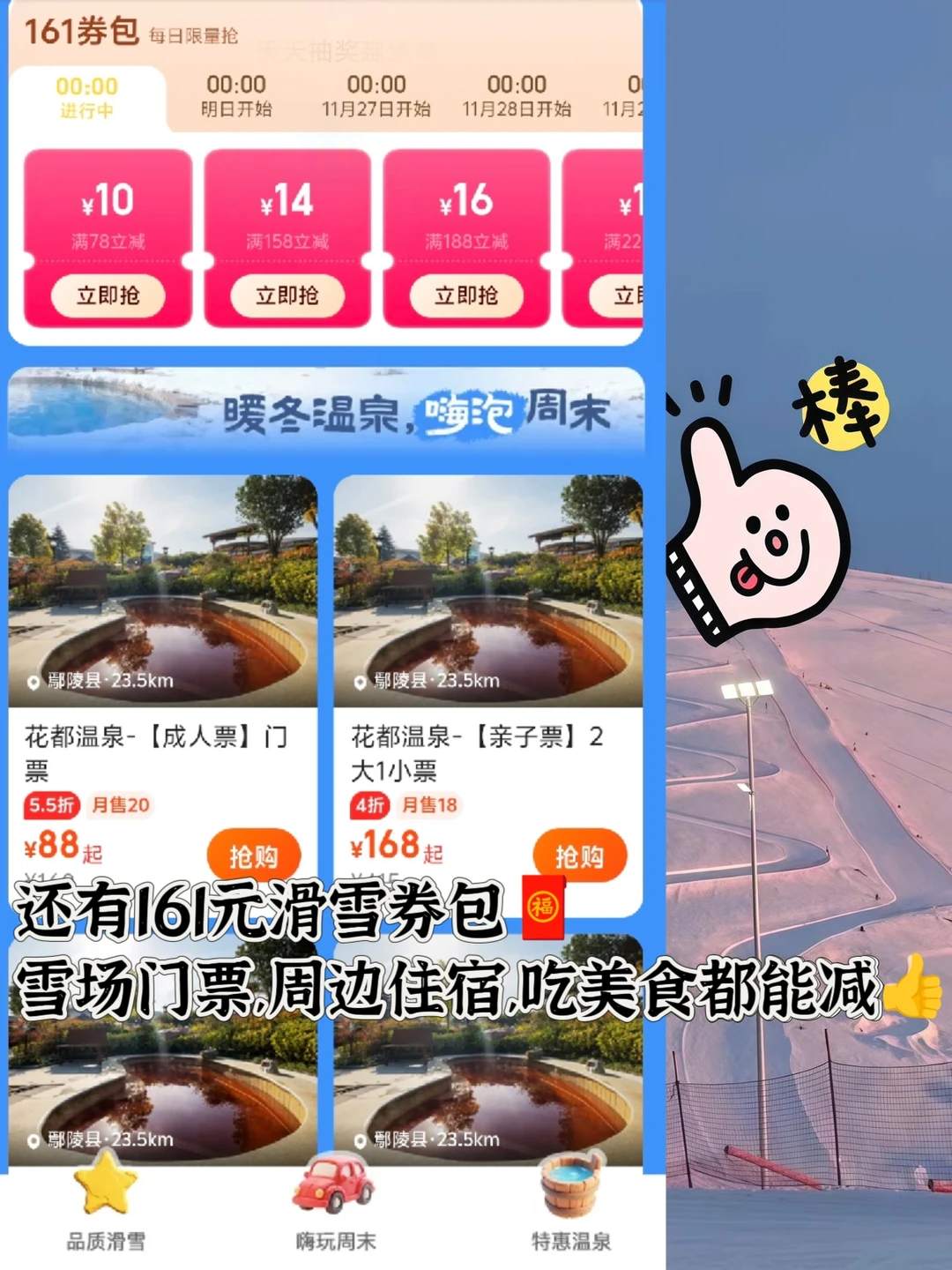 🧧抢161元滑雪温泉券包,大部分雪场都能用超划算
