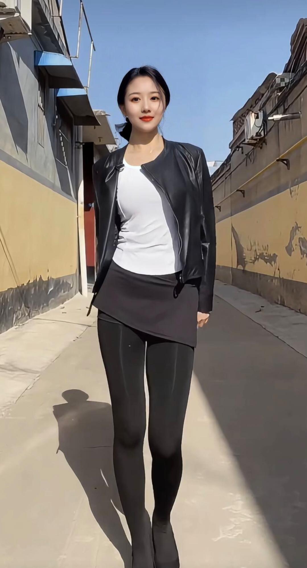 这姑娘穿着皮草外套,站在车前摆姿势。
