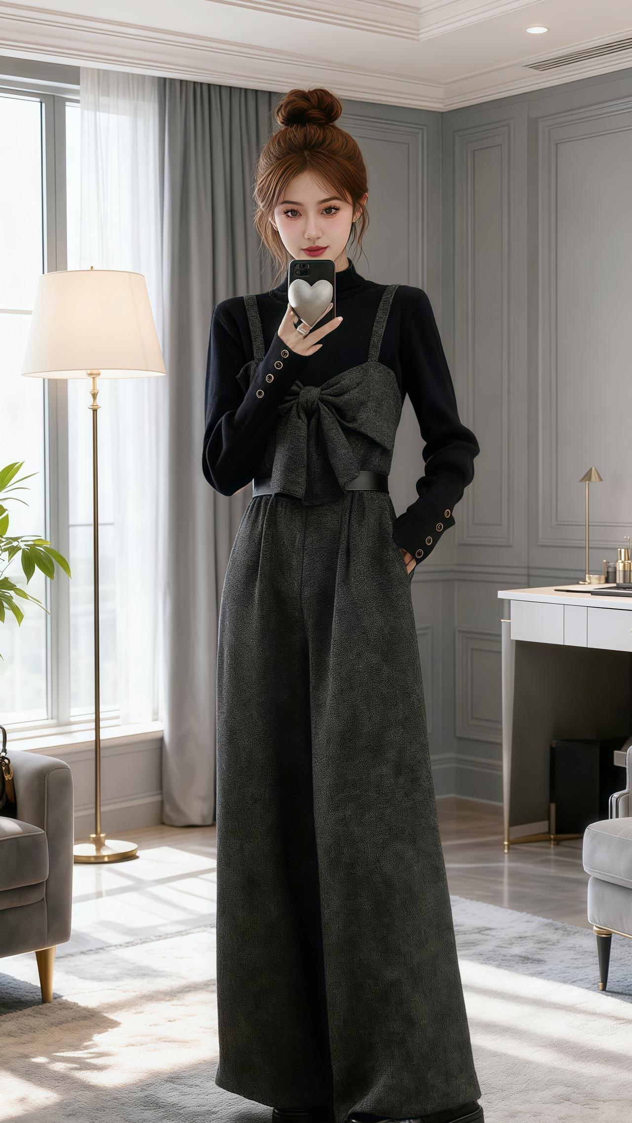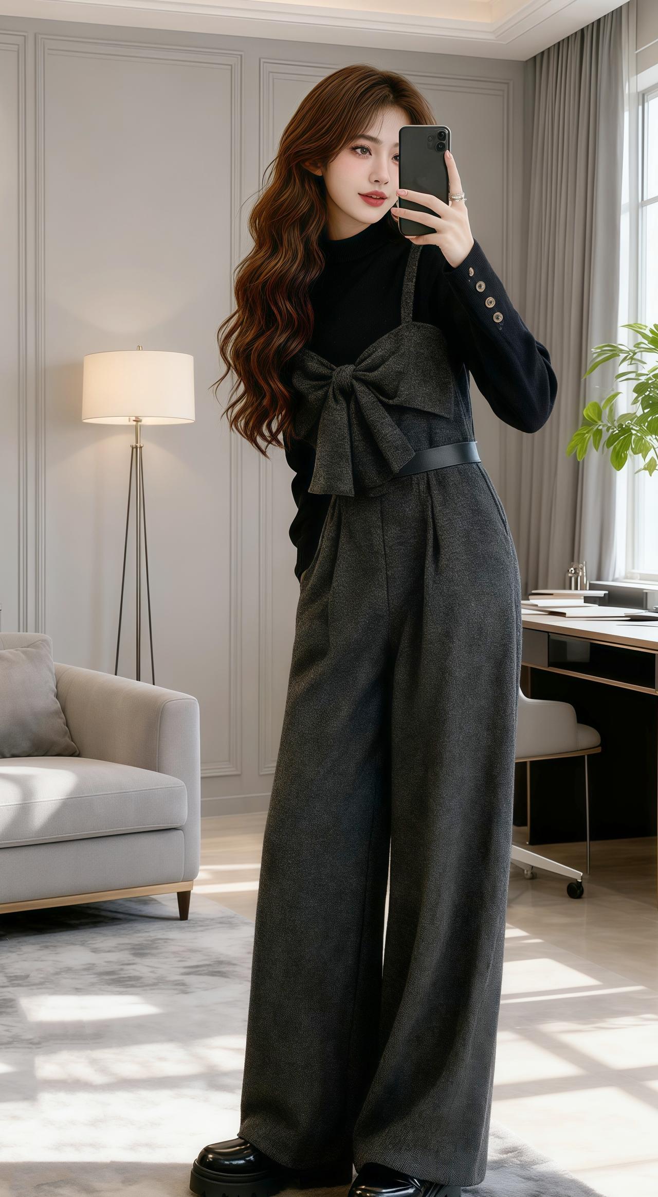 微胖姐妹秋冬穿搭刚需!蝴蝶结背带裤+针织打底两件套,高腰阔腿版型修饰身形,轻松藏住肚腩和胯宽,视觉显高又显瘦。软糯针织亲肤保暖,背带蝴蝶结点缀增添精致感,自带高级质感。不用费心搭配,一套搞定通勤、约会等场景,尺码包容度高,穿得舒适又好看~ 背带裤两件套 微胖遮肉穿搭 通勤搭配 秋冬穿搭