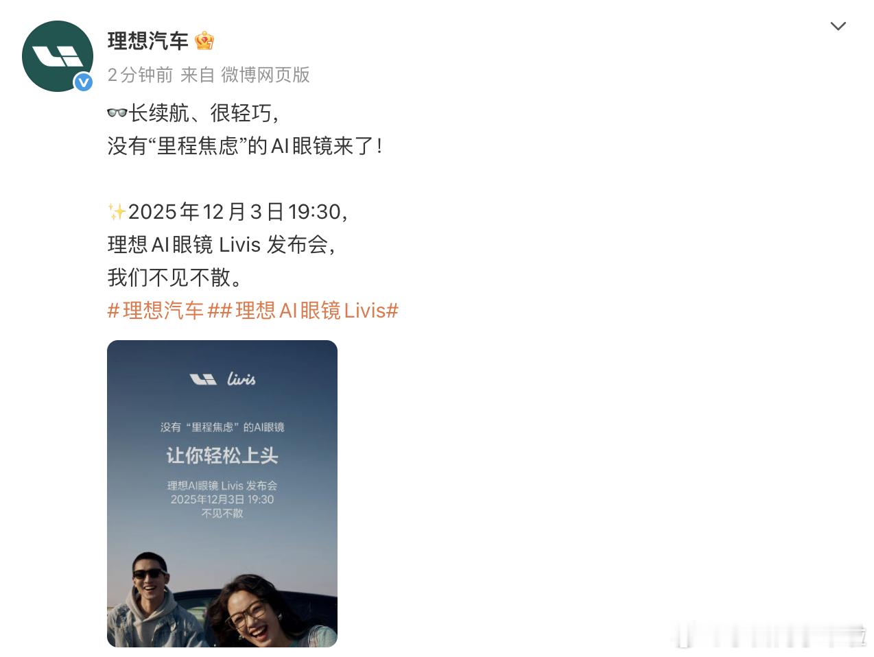 长续航、很轻巧,没有“里程焦虑”的AI 眼镜来了!理想的智能 AI 眼镜难道也有“增程器”? 新能源汽车 理想汽车