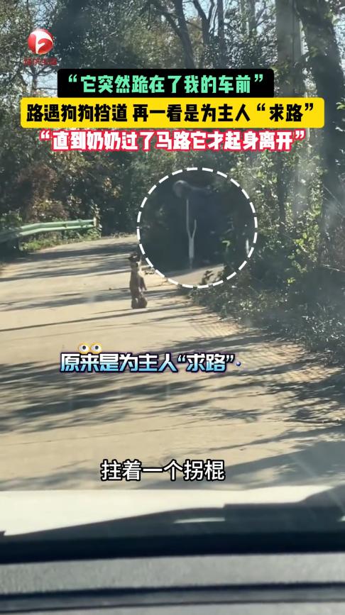 “太有灵性了!”近日,安徽广德,一男子开车行驶在农村小路上,忽然,前方有一条狗窜了出来,可是它并没有离开,而是直接跪在了车前,将男子的车拦下,就在男子不明所以时,一位老人拄着拐杖慢慢走了出来!网友:懂事的好狗。 现在很多人家里面都有养的狗,而农村地区就更加常见了,它们不仅是看家护主的好手,还能帮家里人干些活,而且很多人都发现,农村的土狗要比那些品种犬懂事不少。 据媒体11月25日的报道,当时,潘女士和丈夫开车行驶在村间的小道上,由于是农村地区,再加上路况不熟悉,所以车速并不快。 突然间,一条小狗从岔路口冲了出来,在发现有汽车开过来后,它不仅没有躲避,反而直接跪在了地上! 这波操作可把二人给整懵了,不知道这条狗是要干什么,潘女士刚准备下车赶走它,就看到有位老奶奶拄着拐杖走了出来。 原来,这狗是老奶奶家的,因为老人腿脚不方便,走路很费劲,所以狗狗就先出来帮她“探路”,在发现有车经过时,还聪明的跪在地上拦车,真是条好狗! 网友看后表示,果然万物都有灵,这么聪明懂事的狗狗,简直就像是老人的孩子一样贴心,希望它能够一直陪伴在老人身边。 信息来源:《拄拐奶奶要走过乡村小道,狗狗提前“预判”,跪在车前求让路,等主人通过后才起身离开。》AHTV第一时间