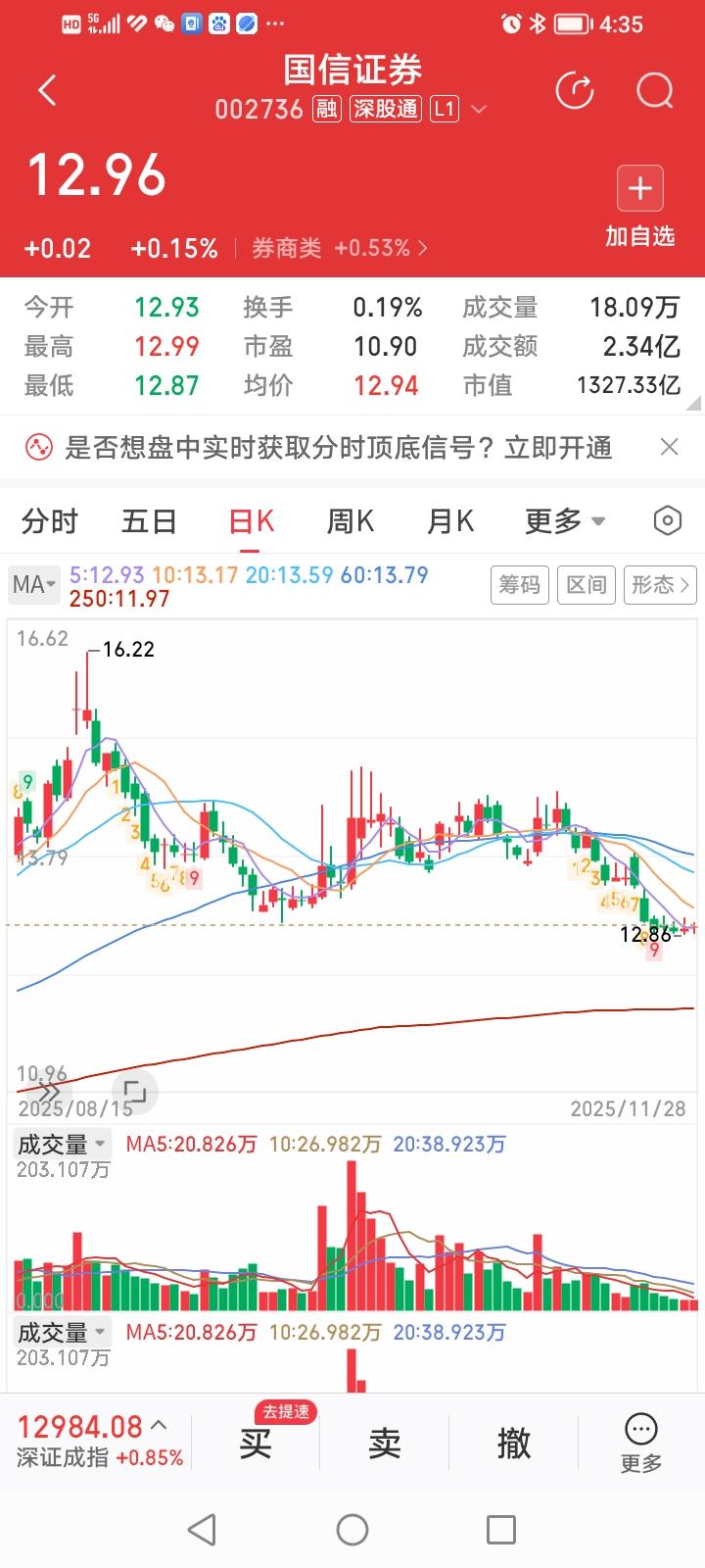 喜刷刷!喜刷刷!券商股今天收盘真挺喜庆的!49家券商股43家上涨,三家因重组停牌,仅三家券商股小幅下跌。 更喜庆的是十家头部券商股除中金公司停牌外,其它九家齐刷刷都是上涨的,来了个集体收官红。具体涨幅如下: 1、国泰海通收盘上涨0.84%,居头部券商股涨幅第一; 2、中信建投收盘上涨0.69%,居头部券商股涨幅第一; 3、华泰证券收盘上涨0.48%,居头部券商股涨幅第三; 4、东方财富收盘上涨0.43%,居头部券商股涨幅第四; 5、广发证券收盘上涨0.28%,居头部券商股涨幅第五; 6、中国银河收盘上涨0.25%,居头部券商股涨幅第六; 7、国信证券收盘上涨0.15%,居头部券商股涨幅第七; 8、招商证券收盘上涨0.06%,居头部券商股涨幅第八; 9、中信证券收盘上涨0.04%,居头部券商股涨幅第九; 尽管9家券商股涨幅有限,涨幅最大的国泰海通涨幅才0.84%,连1%都没有超过。市值一哥中信证券仅上涨1分钱,但也算一种多头表态吧!