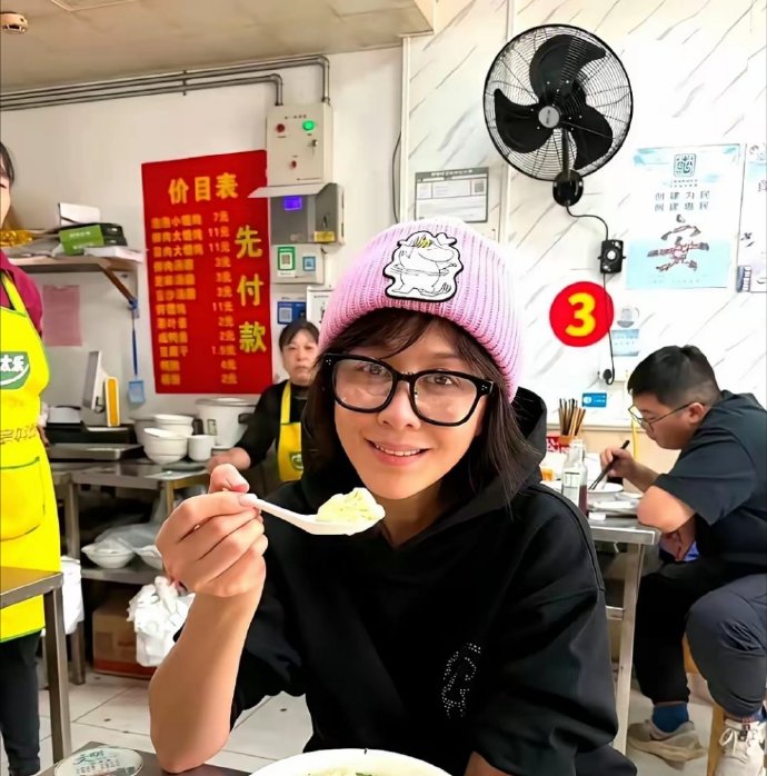 60岁刘嘉玲,陪母亲回老家苏州,在苍蝇馆子吃云吞,看起来像少女一样,一点不显老!