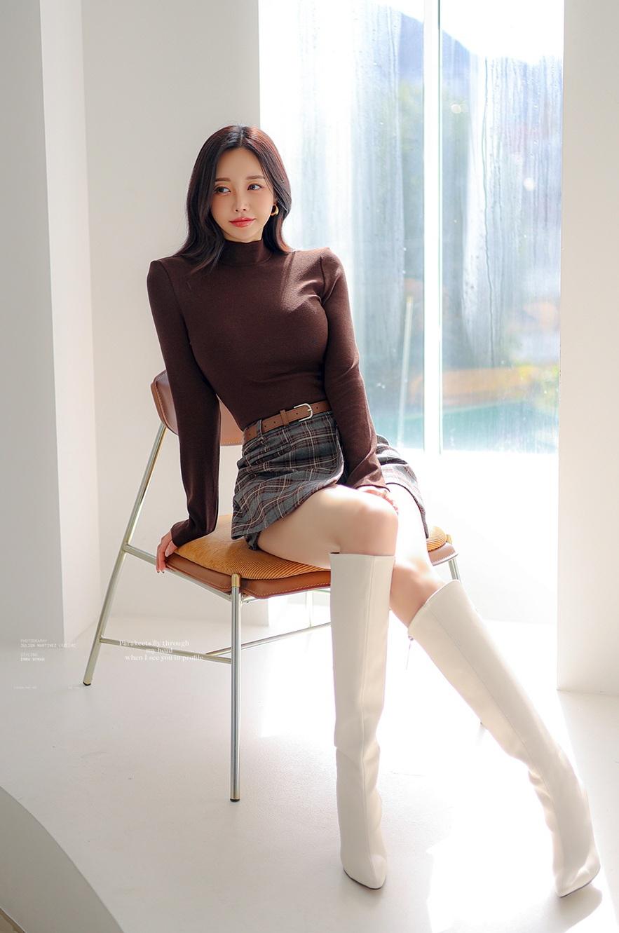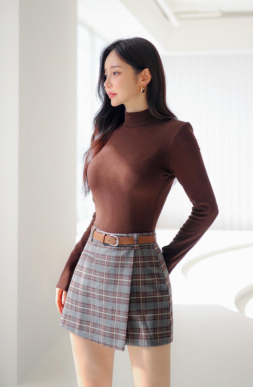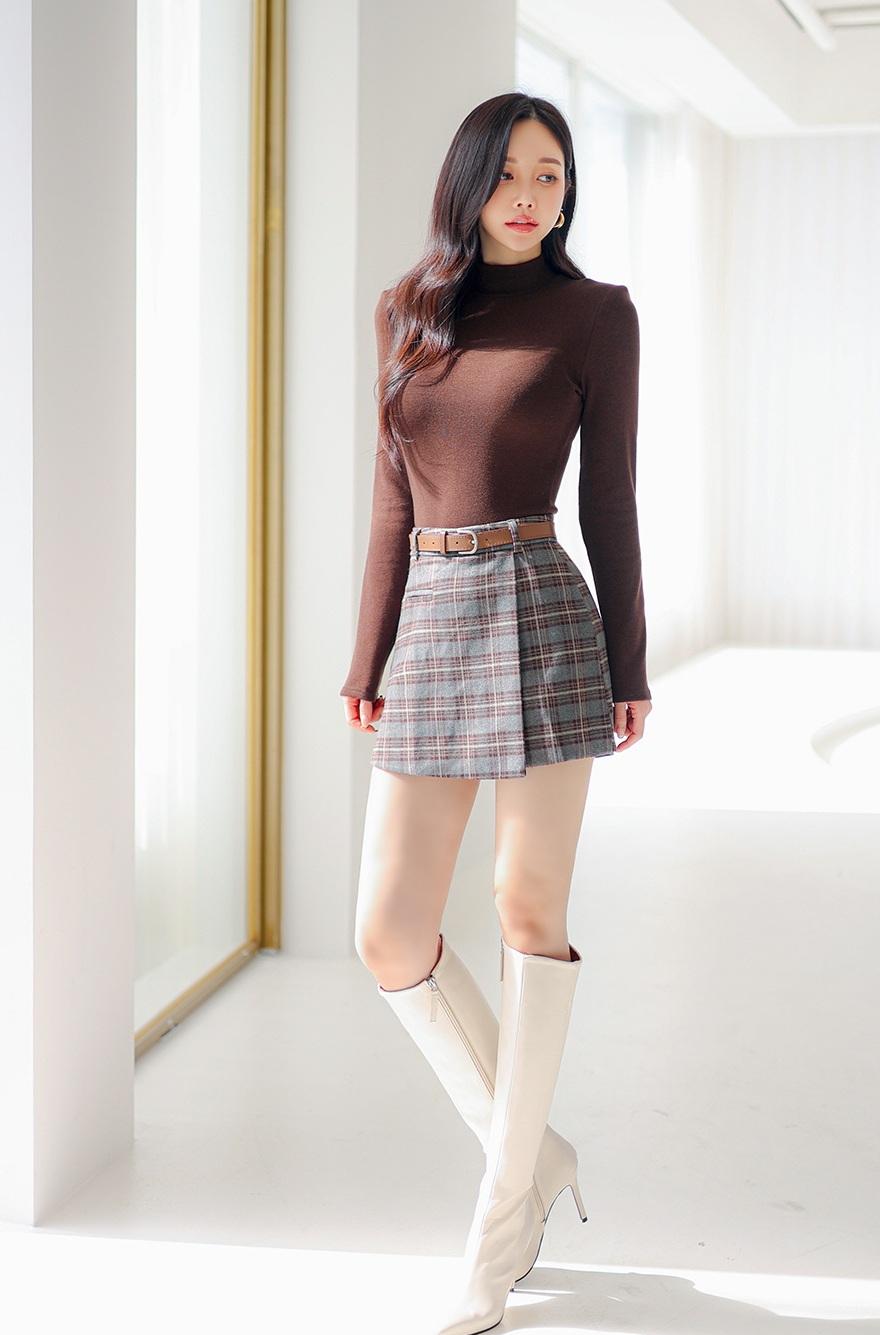 复古格子短裤搭配高跟靴,时尚又优雅!