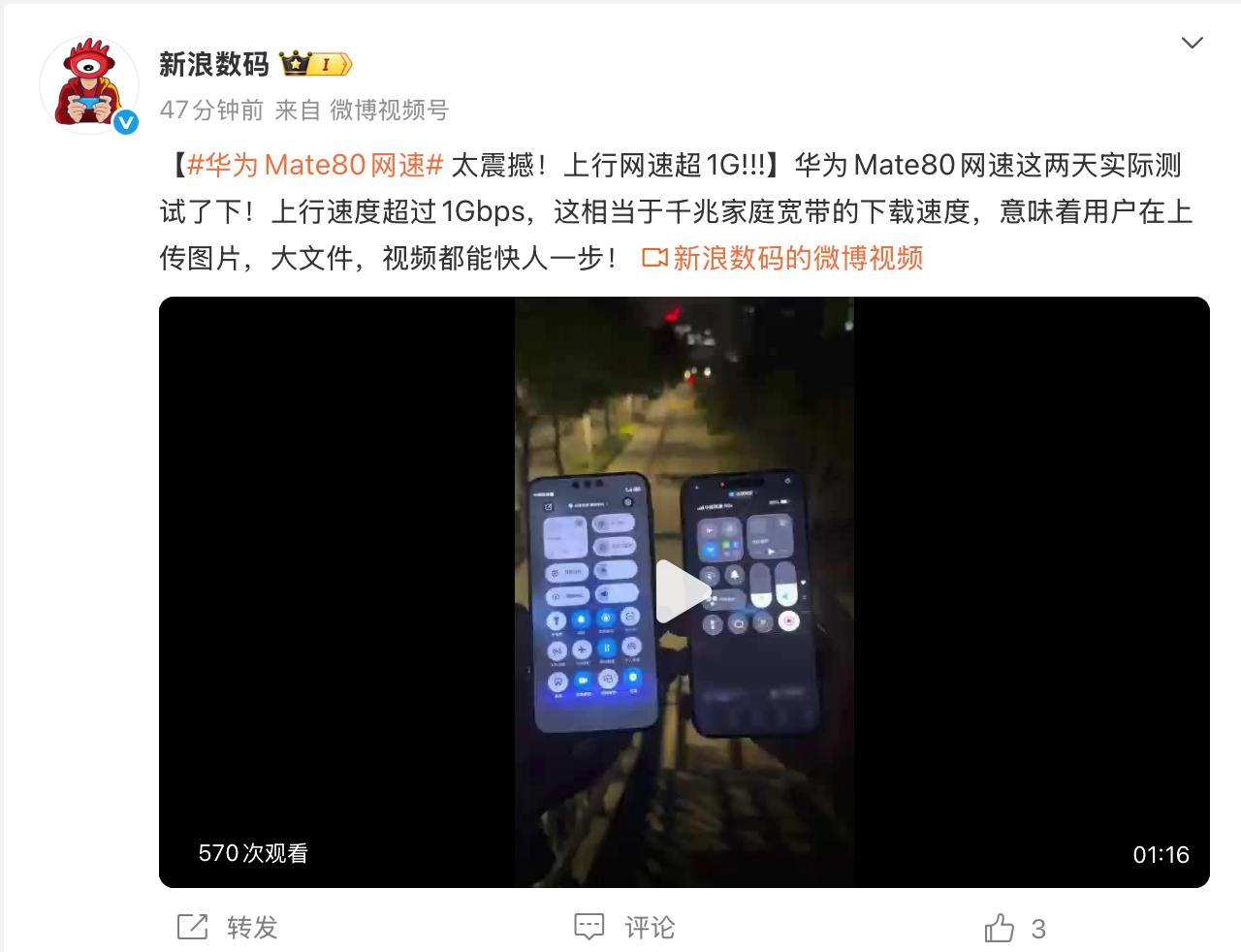 华为Mate 80系列今天开售了,在发布时提到了5A速度,这回终于是能用数字让大家有个直观的感受。华为Mate双旗舰网速1G的上行速度是什么概念?比很多人家里的宽带套餐还要快。华为Mate80网速上行速度可是能影响不少日常手机使用场景,比如在坐地铁时甲方突然让你发一个大文件给他,上行速度慢的话,你就只能看着进度条龟速移动,结果甲方还会不高兴。还有像是视频通话、做超清户外直播,想要效果好,都离不开上行速度。在通信领域这块还得是华为专业,每次都有大升级。