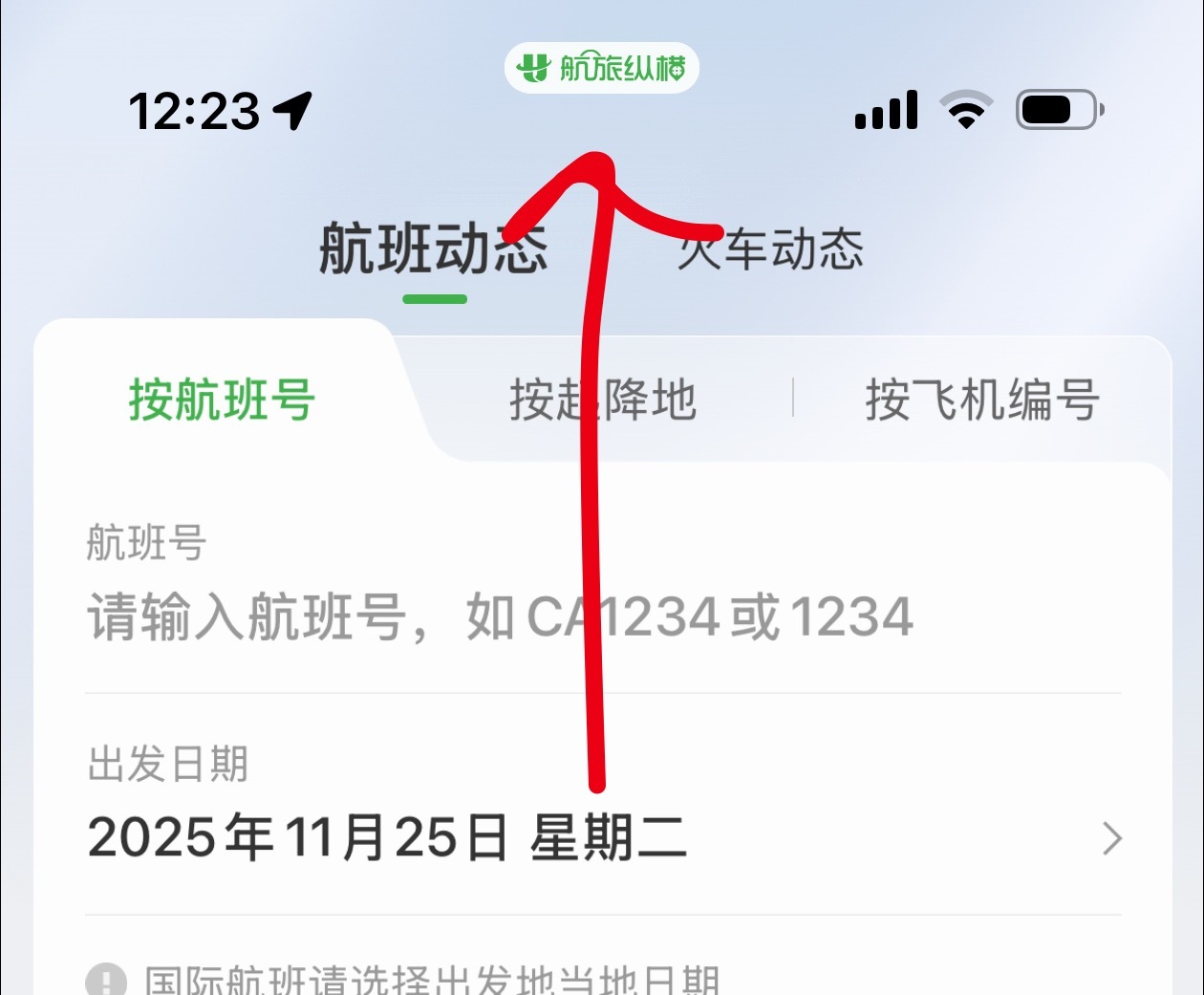 我最近才发现航旅纵横没适配 iPhone Air 的证据航旅纵横 iOS 版本的 UI 在灵动岛的位置藏了一个 logo,正常使用的时候看不到,会被灵动岛挡住,但截图能截出来。图 1 这里。但是 iPhone Air 的灵动岛位置下移了,导致灵动岛遮不住这个 logo 了,图 2。