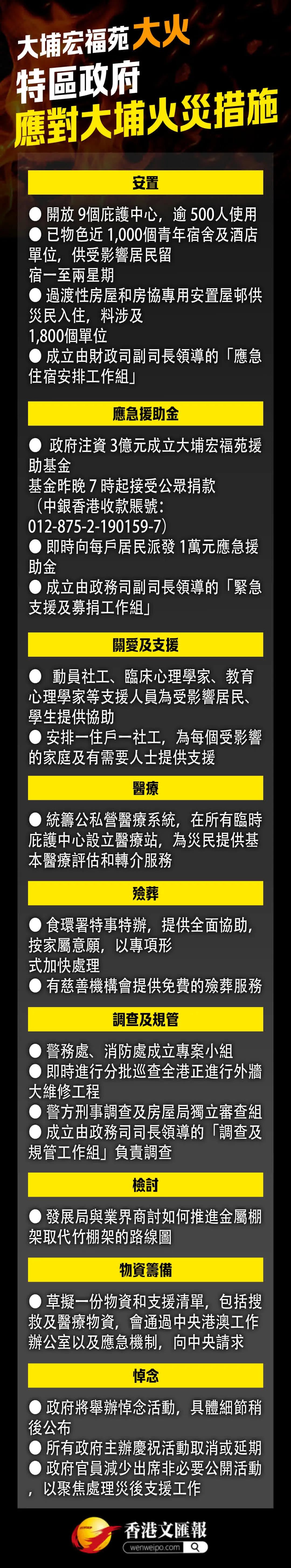 大埔宏福苑五级火|港府向遇难者家属提供20万元慰问金每户提供5万元生活津贴