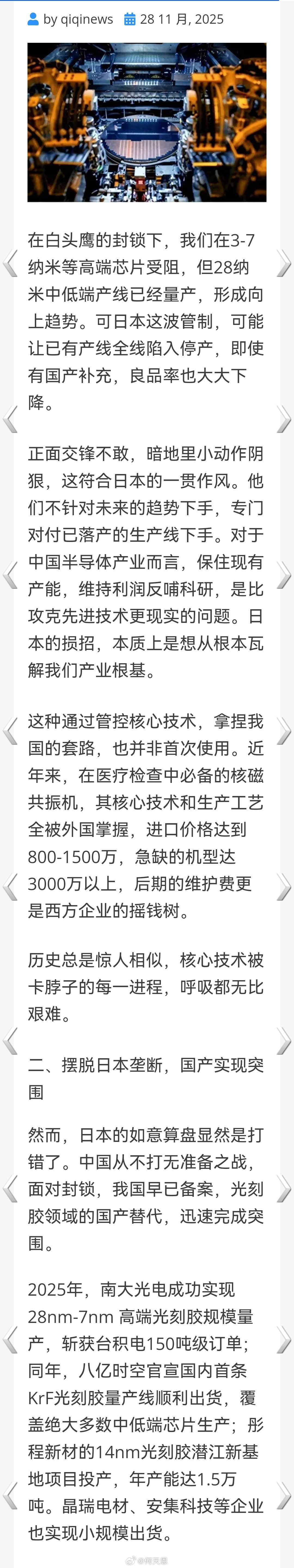 日本对华下狠手?拉黑110多家中企,管制芯片原料,中方一招反制。海外新鲜事何天恩