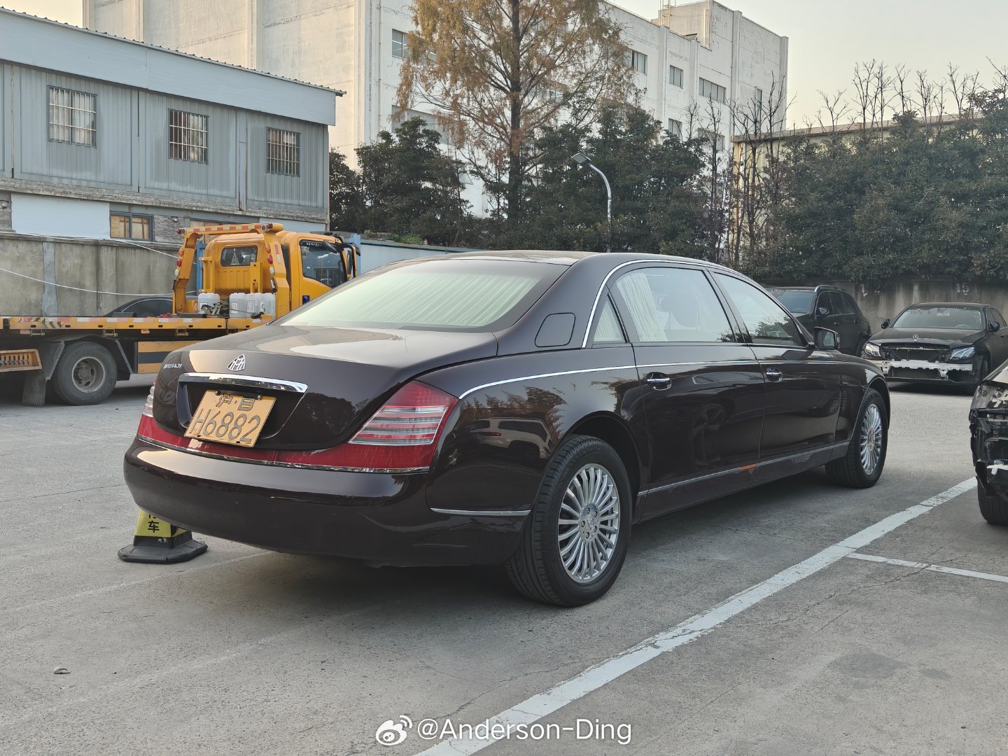 来还车又见到昂贵的迈巴赫了,这次是黄牌62,用的19英寸轮圈。酒红外酒红内别有一番韵味。还有现款燃油CLA以及......腾势X售后真能来奔驰做啊???