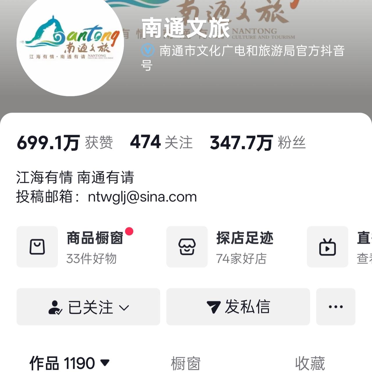 南通文旅一句话涨粉百万,这就是大家的凝聚力,这就是我们团结的力量。在其他人都选择沉默的时候,南通文旅官方账号的一句话震破寰宇。总要有人先站出来,但是令大家没想到的是,最先站出来的是只有不到30万粉丝的南通文旅。然而如今再看,南通文旅的粉丝数已经远超老大哥南京文旅和江苏文旅了。南通在我们的心中已经做到一哥的位置了,为南通文旅加油!