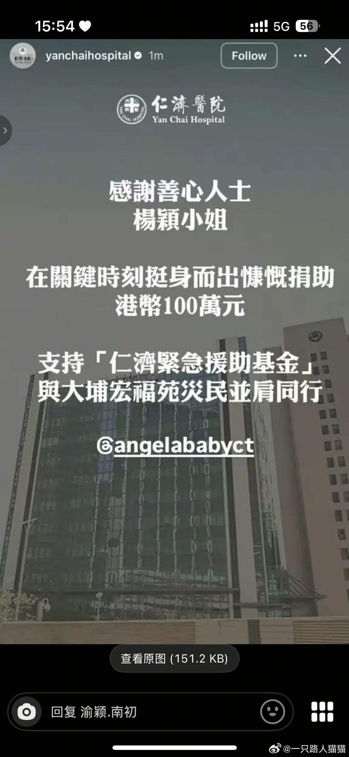 Angelababy向香港灾区捐款一百万港币善良的人一定会顺利的 姐姐你怎么这么低调