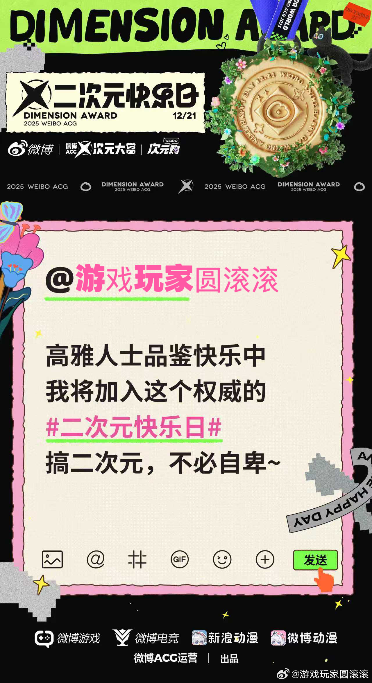 一年一度的ACG次元大赏带着超多福利赶来跟大家见面了!ACG次元大赏不仅有线上体验,还有线下体验模式,为全国二次元爱好者提供了交流展示自己的舞台,无论你是资深ACG迷还是刚入门的萌新,都能找到适合自己的参与方式,从即日起至12月21日,大家别忘了参与线上活动,🉑兑换限量周边和专属福利,千万别错过这场二次元的年终狂欢!二次元快乐日ACG次元大赏微博游戏大赏