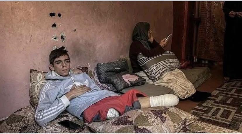 他的错只是因为他出生在加沙。来自贾巴利亚的18岁青年达乌德·艾德·艾德流离失所,目前居住在加沙中部布雷吉难民营。一天,他返回被毁的家园查看时,一枚占领时期遗留的爆炸物爆炸,导致他失去了双腿。 他原本正在准备高中毕业考试,梦想着出国留学,但如今,他唯一的希望就是能够出国旅行,并安装假肢,帮助他重拾生活的一部分。 他的母亲陪伴他走过治疗的每一步,给予他力量和安慰,帮助他适应这他从未想过会面临的全新现实。