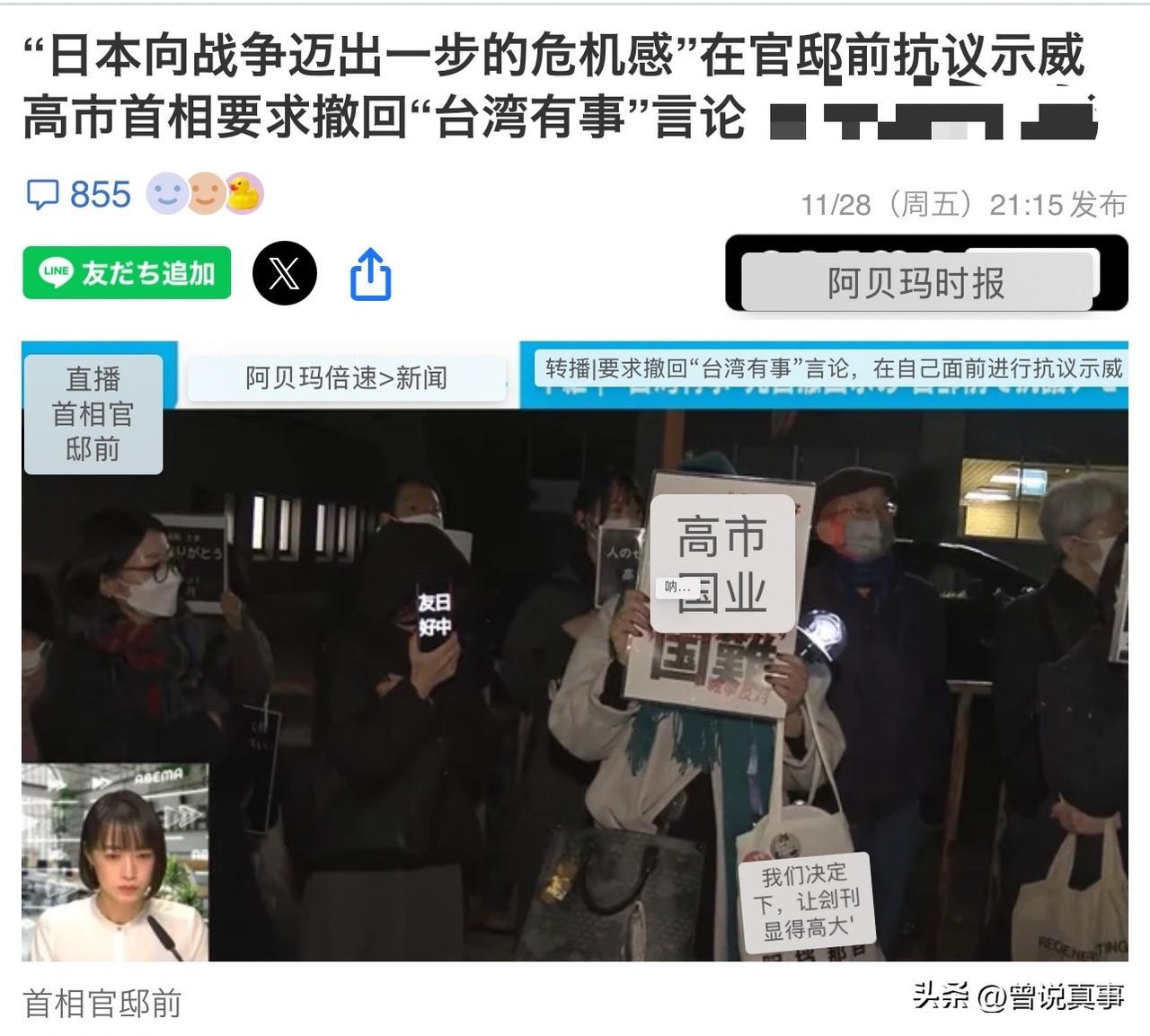 非常不满!日本方面又传来抗议高市早苗的活动! 当地时间11月28日晚上,日本民众聚集在首相官邸前抗议,声称高市早苗将日本推向战争边缘,并要求高市早苗撤回错误的对台言论,或者高市辞职退位。 值得一提的是,自高市发表涉台言论后,不满民众几乎每天都有聚集其首相官邸进行抗议,少则数百人,多则一两千人。他们都要求高市“不要煽动战争风险”、“撤回错误言论”或“下台道歉”。