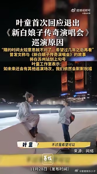 11月28日,综艺《一路繁花2》中叶童首次回应了不再参与演唱会巡演的原因,她说:“我是觉得应该隔一段时间,因为本来是为了30周年,又变成32周年,我希望过几年之后再看吧,会比较有意思,否则的话就变成一直搞下去,就好像那个意思就不对了。”