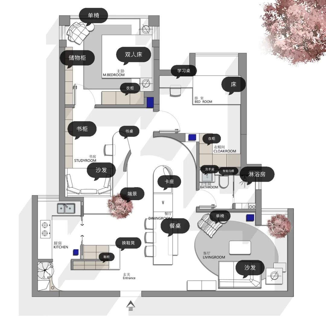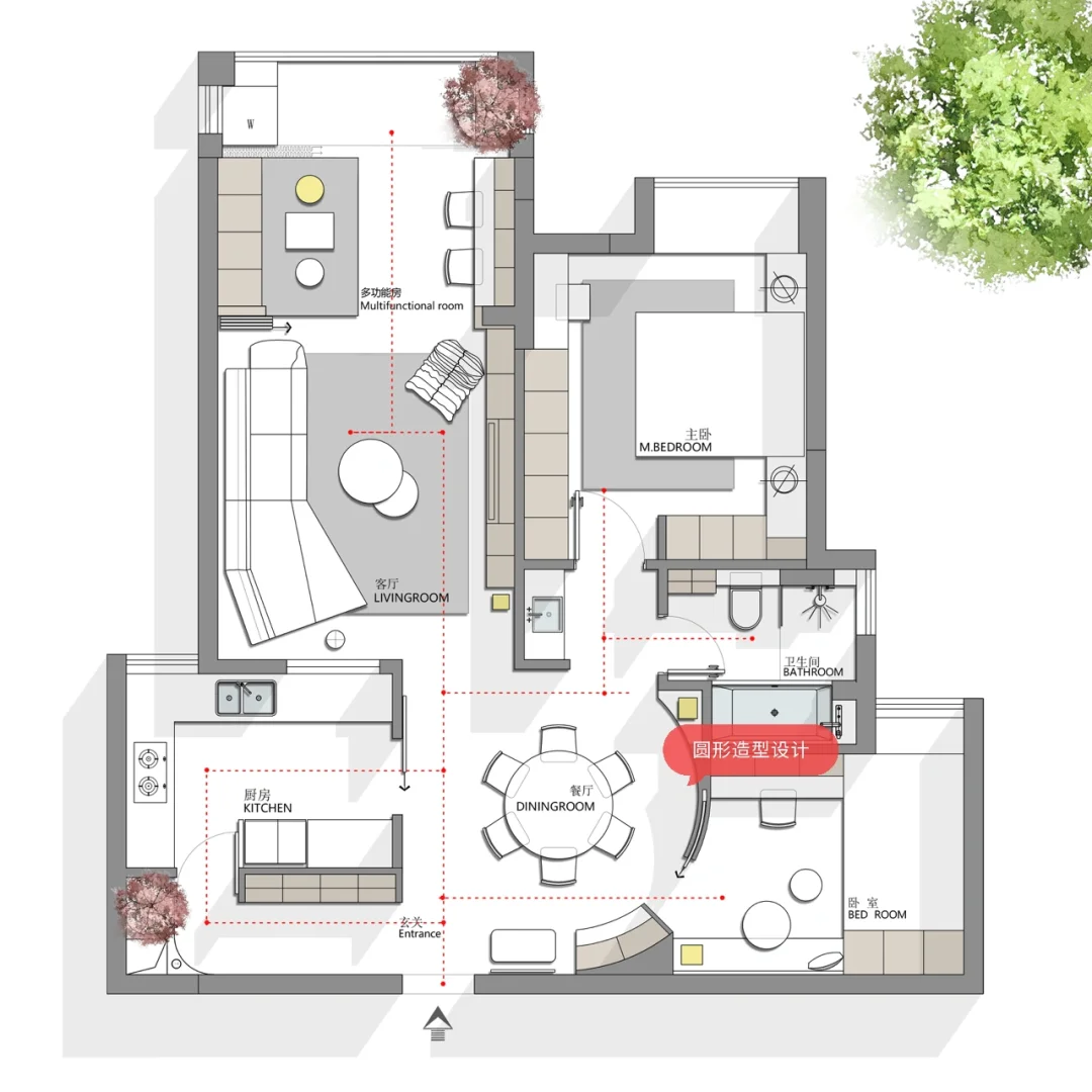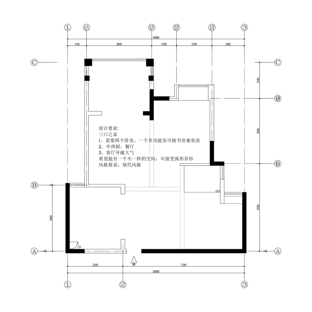 设计要求:一家三口,两间卧室,一个多功能书房,宽敞大气的客厅,中西厨 希望能看到不一样空间,接受大改造,接受弧形 风格要求:现代简约 先看看这三版方案! 说说你最喜欢的吧!