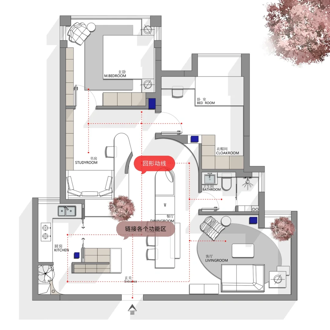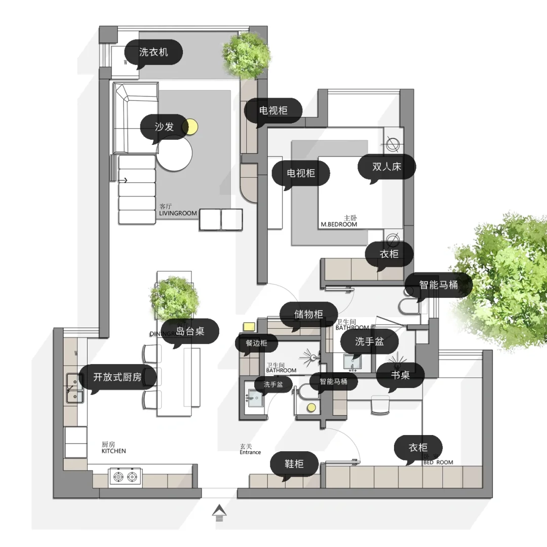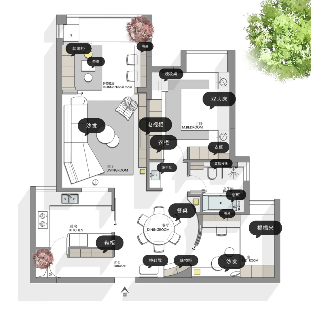 设计要求:一家三口,两间卧室,一个多功能书房,宽敞大气的客厅,中西厨 希望能看到不一样空间,接受大改造,接受弧形 风格要求:现代简约 先看看这三版方案! 说说你最喜欢的吧!