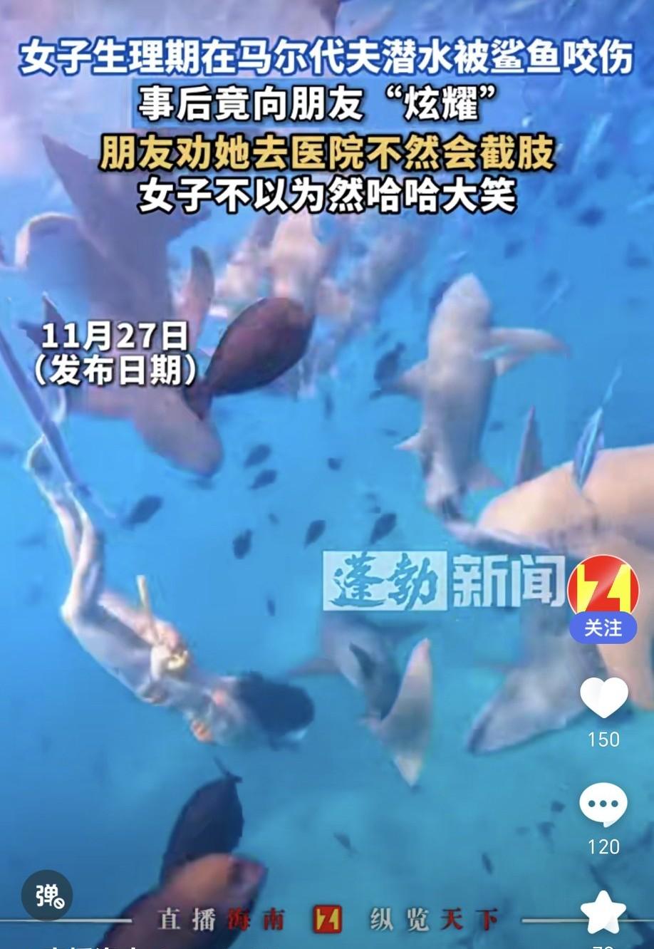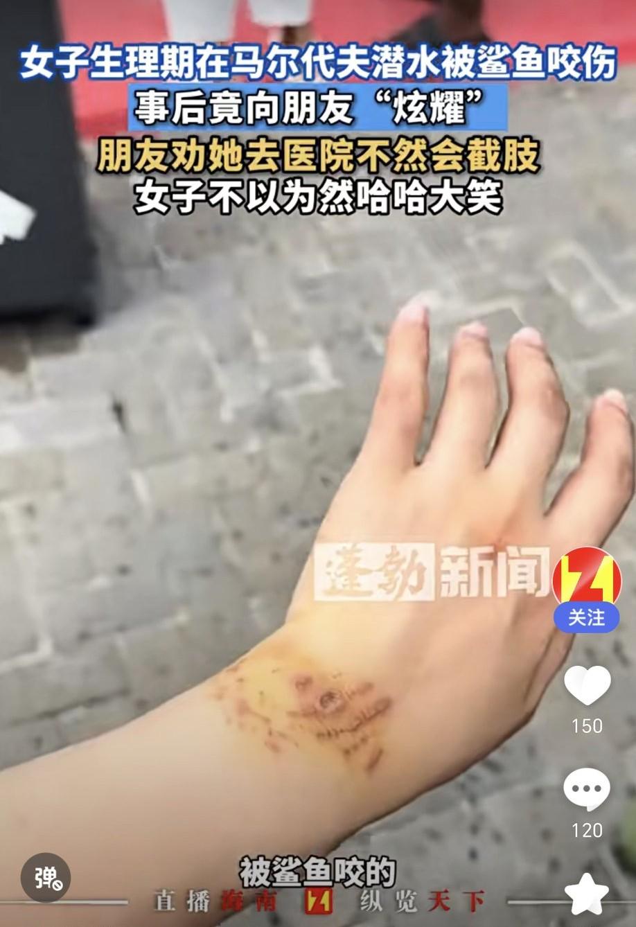 现在有些人作的不行 一女子在马尔代夫旅游,生理期还为了出片四次下水和鲨鱼拍照。第一次嫌妆容和角度不好,第二次游向鲨鱼活动区,第三次直接冲进鱼群追着鲨鱼拍。结果第四次刚下水就被鲨鱼咬了手。同行的人劝她赶紧去医院处理,不然手臂可能会截肢,她却哈哈大笑不当回事。后来虽去了当地医院,也只是简单消毒,心真大。她觉得自己被攻击是生理期引来了鲨鱼。 A网友:生理期还潜水,真勇敢;后期不会导致痛经吗?真认为自己在水里打得过鲨鱼?血腥味不怕引来其他危险性鱼类? B网友:无知无畏!生理期下水是拿自己的生命挑逗鲨鱼!不是心大,就是认知低下。医生告诉她明天来截肢还能这样笑那才是真心大。 尊重他人命运,尊重自然选择。 医学本就不建议生理期潜水,她既不顾自身健康,又缺乏对野生动物的敬畏,越无知的人越自信,真让人捏把汗。成年人要为自己的行为负责,自己都不在乎,别人为何要在乎?