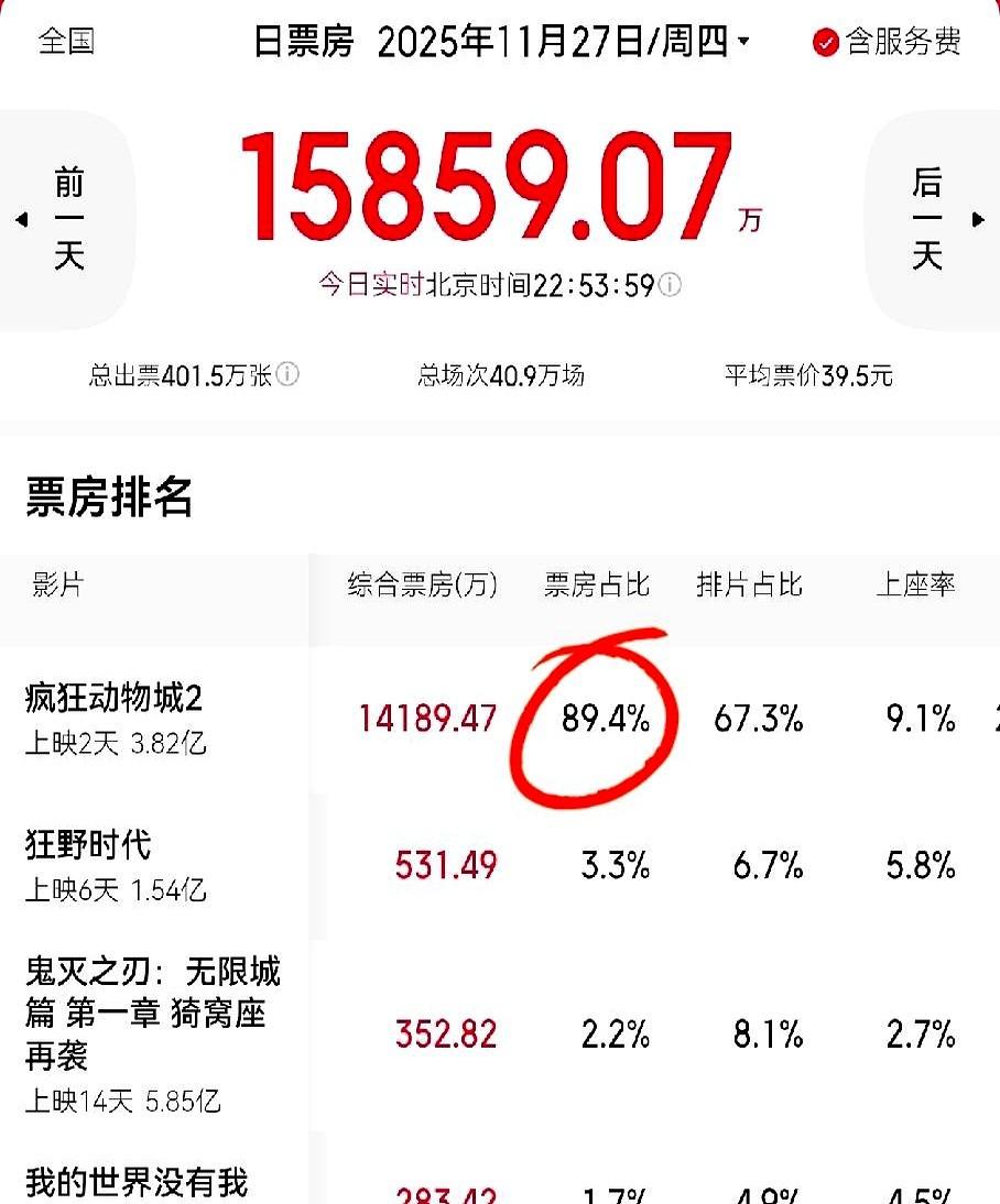 刚刷到票房数据,《疯狂动物2》这波真杀疯了! 一天票房破亿,上映两天直接干到3.82亿,同期刚上的《我都世界没有我》完全被压得没脾气。 这表现太能打了!事实证明观众不是不爱看电影,是好片不够多啊——只要片子拍得够顶,票房根本不愁! 唯一小槽点就是中配有点不贴脸,但瑕不掩瑜,目测总票房冲20亿稳了!