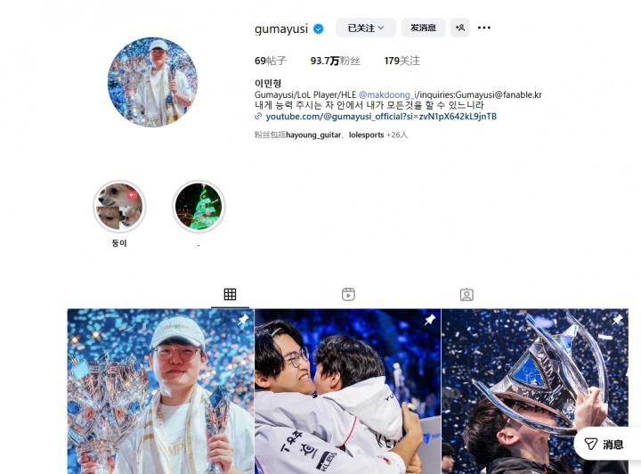 今日有粉丝发现GumayusiINS账号取关了T1官方账号。