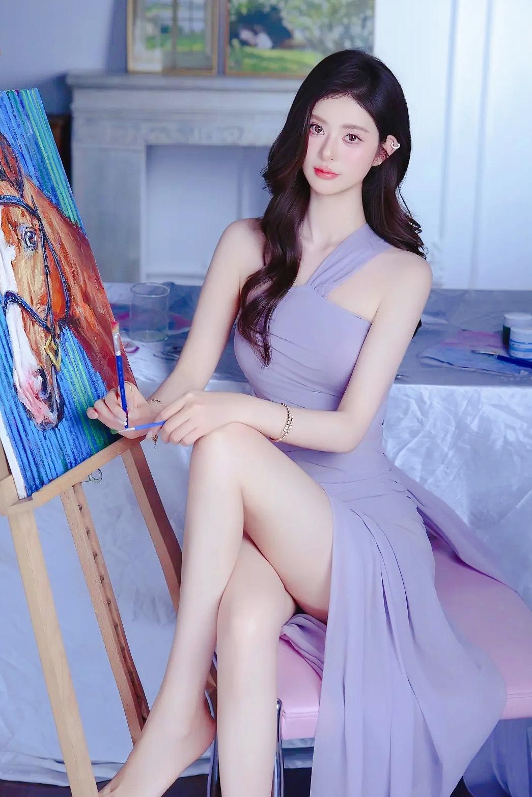 上联:淡紫裙轻,执笔漫将色彩揽 下联:画室光软,垂眸悄把温柔收 对联 对对联飞花令
