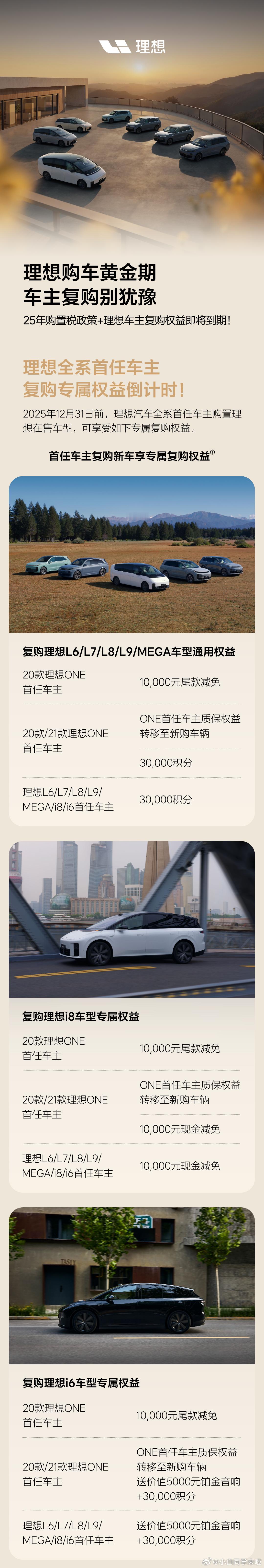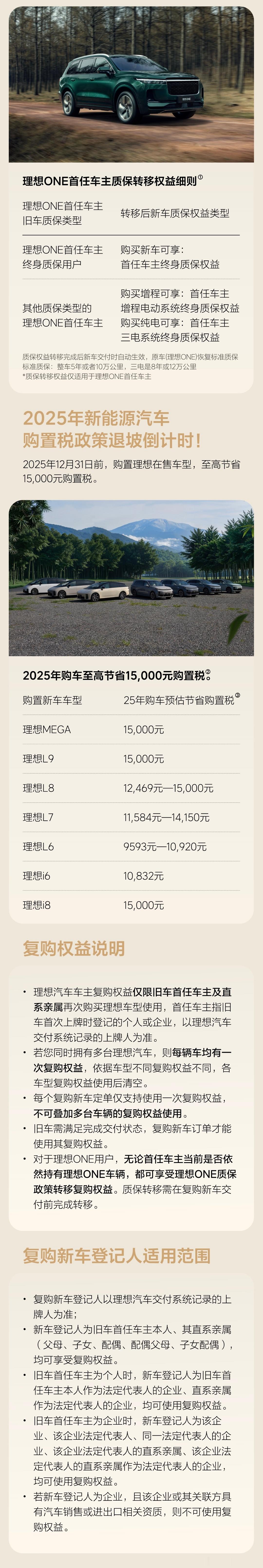 理想汽车又更新了一波购车权益,其中购置税兜底日期延长到了 12 月 31 日了。新能源汽车理想汽车