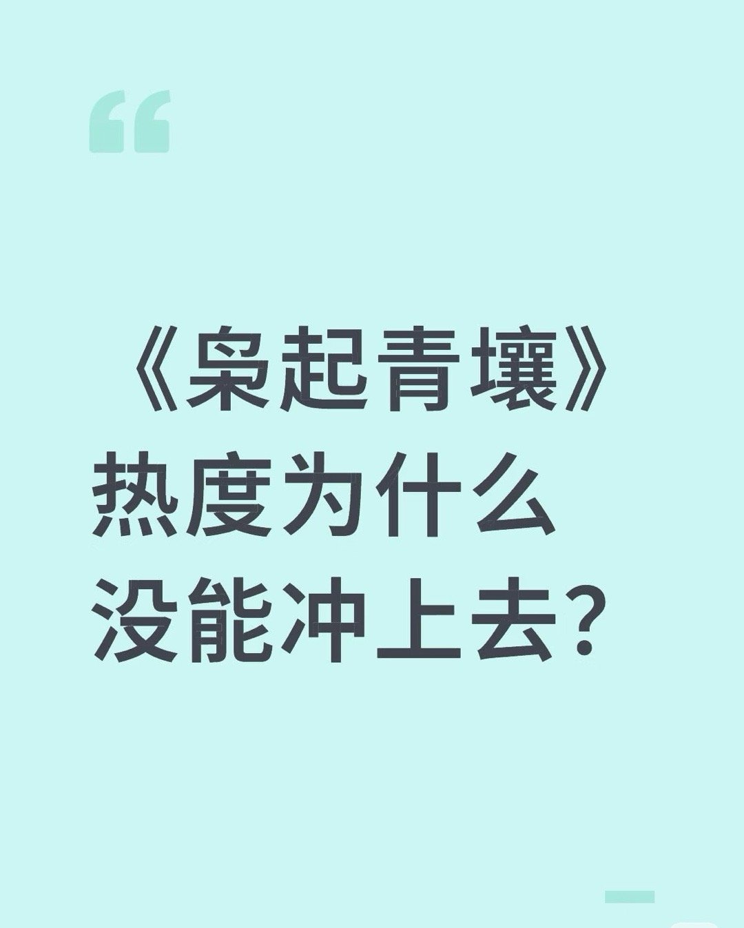 《枭起青壤》热度为什么没能冲上去?