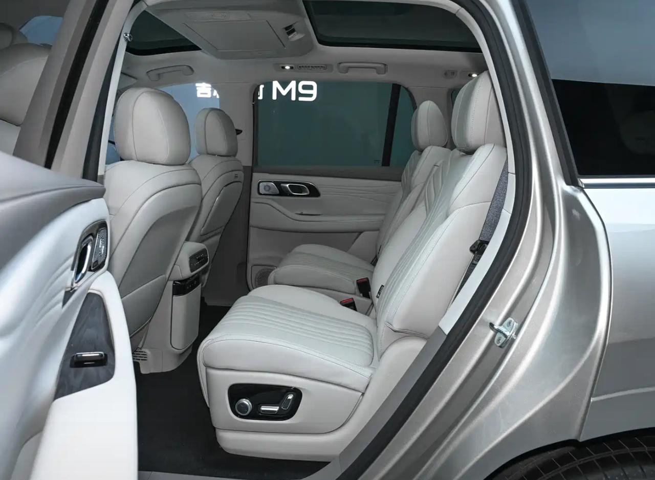 2025款吉利银河M9官方公布信息汇总 2025款银河M9是吉利汽车旗下的中大型SUV,能源类型为插电式混合动力,于2025年9月17日正式上市。 该车官方指导价区间为18.38-24.88万元,同时设有17.38-23.88万元的限时指导价,共推出6款配置车型供选择。 车身尺寸方面,其长宽高分别为5205mm、1999mm、1800mm,轴距为3030mm,车身结构为5门6座布局,车门开启方式为平开门。 外观设计上,该车采用封闭式车头,配备贯穿式LED日间行车灯,前包围两侧为T字形散热口,中间设有带主动格栅功能的梯形散热开口,车顶搭载激光雷达;车身侧面车门边框有银色饰条点缀,搭配外拉式门把手和大尺寸密辐轮圈;车尾配备车顶扰流板与贯穿式尾灯组,后包围加入镀铬装饰,勾勒出双边共两出的排气造型。 内饰部分,配备12.66英寸内嵌式全液晶仪表盘、双色三辐式多功能方向盘,中控区域为与副驾相连的30英寸贯穿多媒体触控屏,中控台通道处设有双无线充电面板及部分物理功能按键和旋钮。 座椅配置上,第二排为两个独立航空座椅,配备无缝腿托、腰托,支持通风、加热及10点按摩功能,二排还搭载17.3寸3K吸顶屏;第二、三排采用纯平地板设计,过道宽度为180mm;6座状态下后备厢容积为328L,二、三排座椅放倒后最大储物空间可拓展至2171L。 动力系统由1.5T四缸涡轮增压发动机与电动机组成插电式混动系统,发动机型号为BHE15-CFZ,最大功率120kW,匹配3挡混合动力专用变速箱(DHT),提供前置前驱和前置四驱两种驱动形式。 电池方面搭载磷酸铁锂电池,电芯品牌为宁德时代,CLTC纯电续航里程分别为100km、230km和210km三个版本,电池快充时间(30%-80%)在0.25-0.33小时之间。 性能参数上,该车WLTC综合油耗为0.5-1.49L/100km,最低荷电状态WLTC油耗为5.6-6.25L/100km,官方0-100km/h加速时间为4.5-7.7秒,最高车速为200-210km/h,综合续航里程超1500km。 底盘部分,全系标配前双叉臂独立悬架+后五连杆独立悬架,100km版本车型配备可变阻尼减震器,顶配车型可选装双腔闭式空气悬架,底盘悬挂由路特斯团队调校。 整车质保政策为六年或15万公里,电池提供非营运状态下的终身质保(责任免除条款以官方为准),环保标准符合国VI排放要求。 智能化方面,该车搭载全场景AI Agent智能体、端到端AI语音大模型、AI数字底盘及星睿AI云动力配置,辅助驾驶采用千里浩瀚H5方案,可实现全场景车位到车位D2D功能。 主动安全配置包括ABS防抱死、制动力分配、刹车辅助、牵引力控制、车身稳定控制、防翻滚稳定系统、并线辅助、车道偏离预警系统、车道保持辅助系统、车道居中保持、主动刹车、道路交通标示识别、疲劳驾驶提示、DMS主动疲劳监测、DOW开门预警、前方碰撞预警及后方碰撞预警;被动安全配置涵盖驾驶座安全气囊、副驾驶安全气囊、前排侧气囊、后排侧气囊、前排头部气囊(气帘)及后排头部气囊(气帘)。 (图片来源:汽车之家)