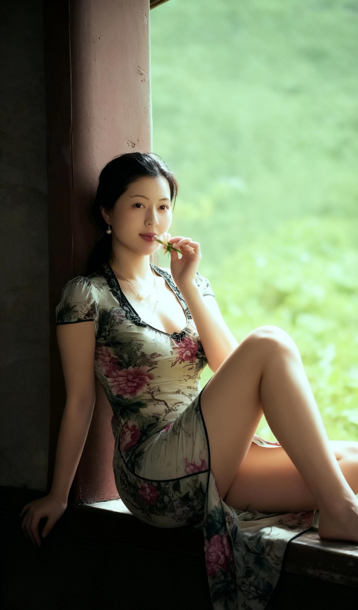 她身着水墨风旗袍,牡丹晕染间尽显东方气韵,乌发如瀑,耳饰轻摇,倚栏时腰肢纤细,眼波流转着温婉。阳光为她镀上柔光,连衣角都藏着风情。这画面,是传统美学与现代柔美的碰撞,是行走的诗画,是时光都愿慢行的风景。美女人像群 高清美女 美女欣赏图片 江南风旗袍照 旗袍古典身韵 江南旗袍照 江南墨旗袍 江南旗袍故事感 旗袍古韵写真 水墨风吊带裙