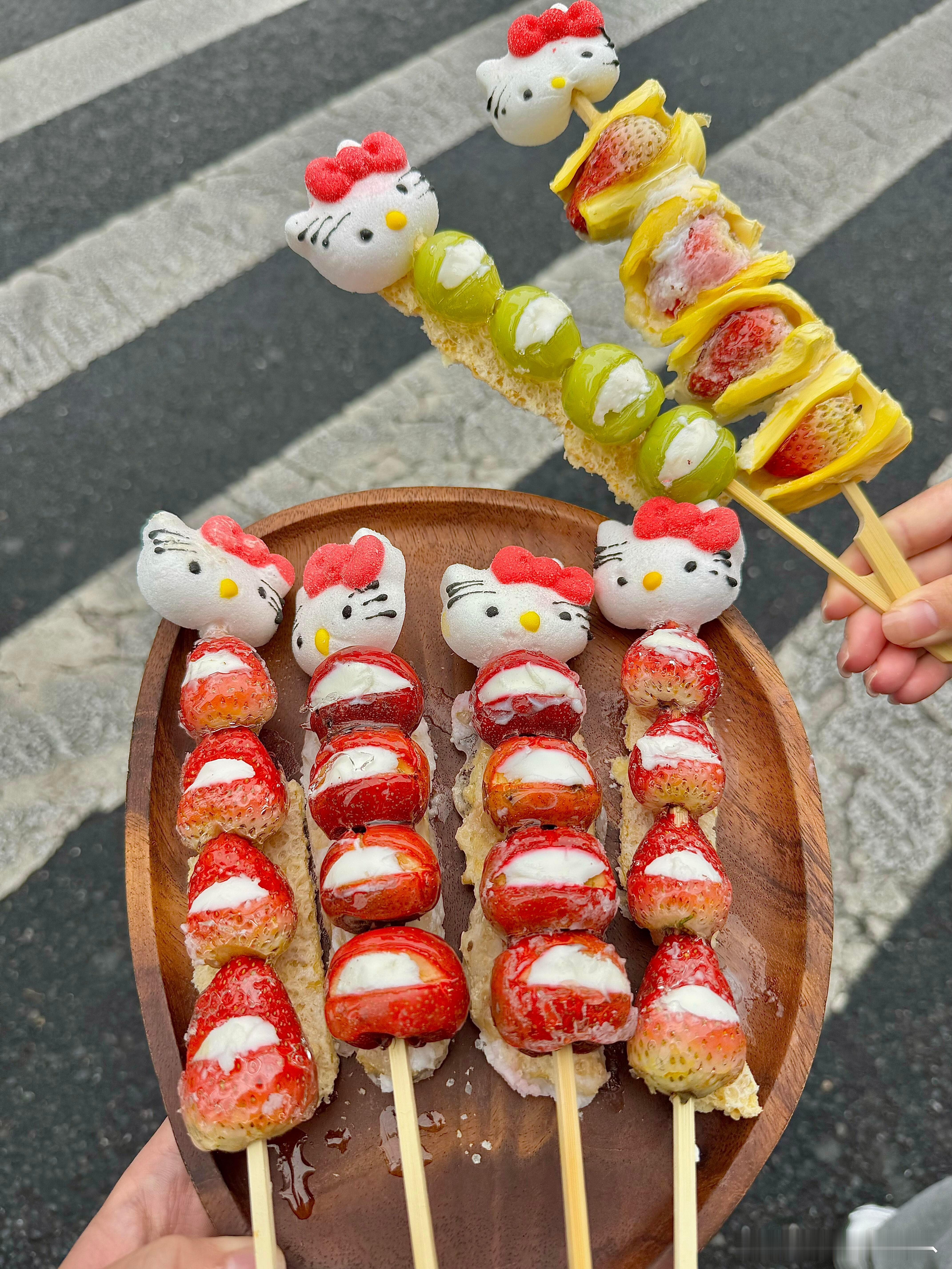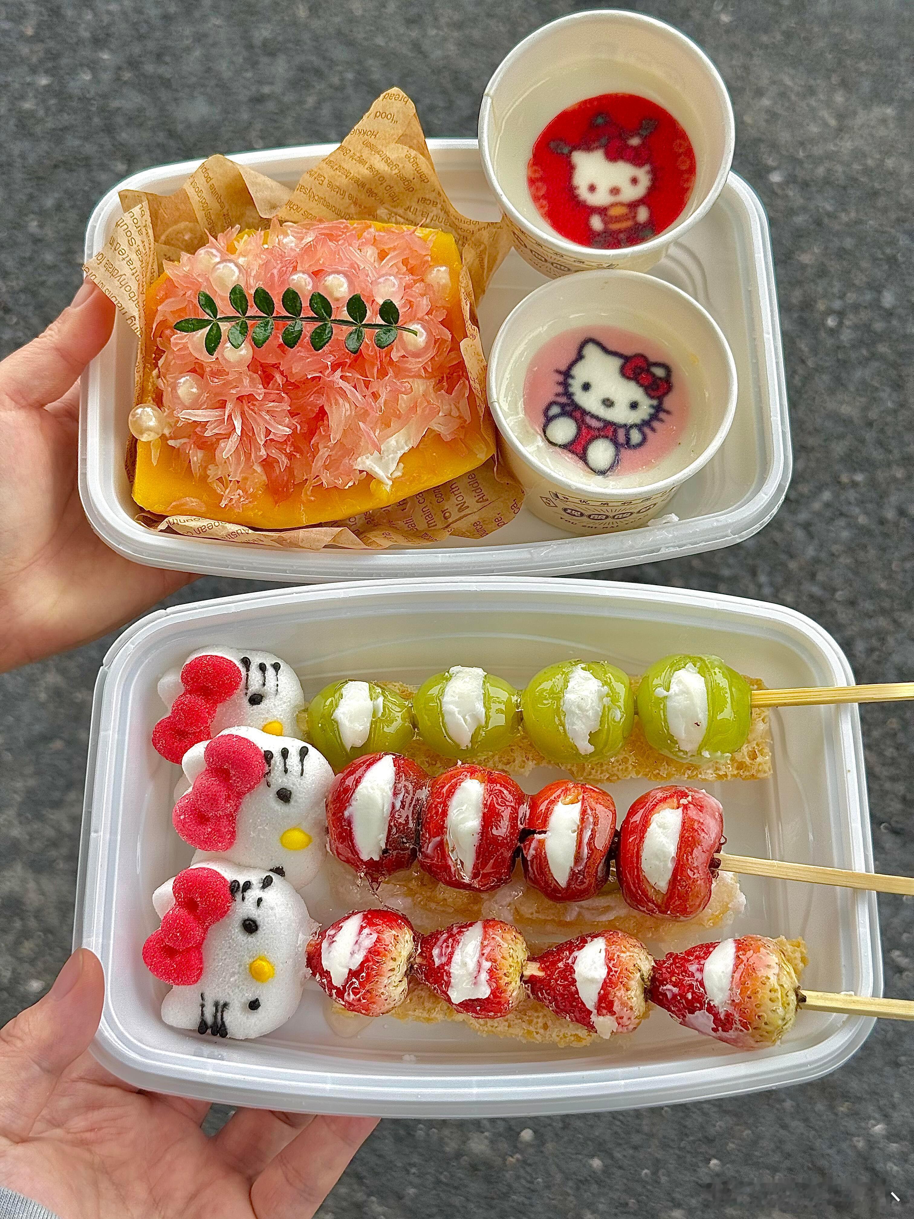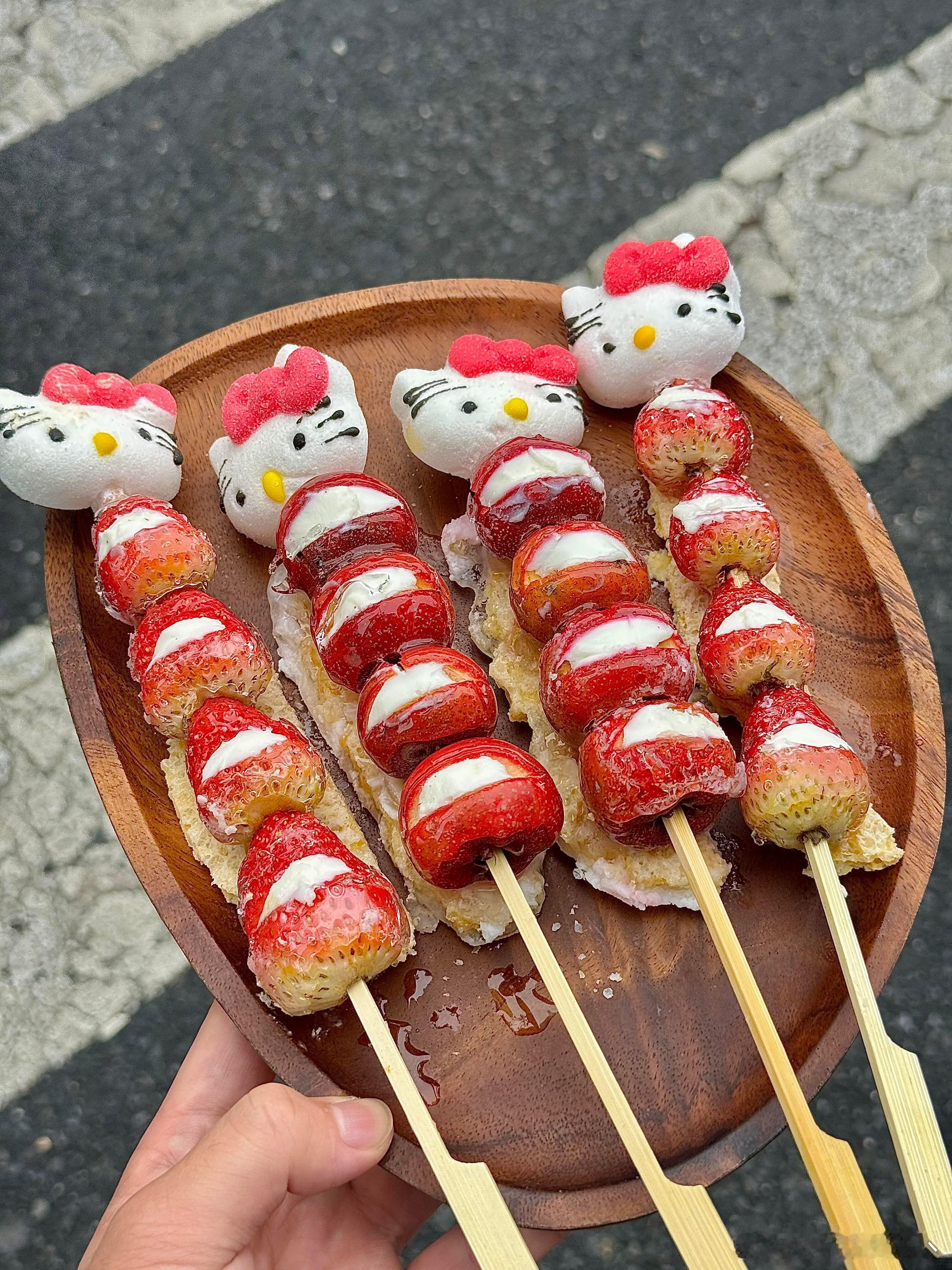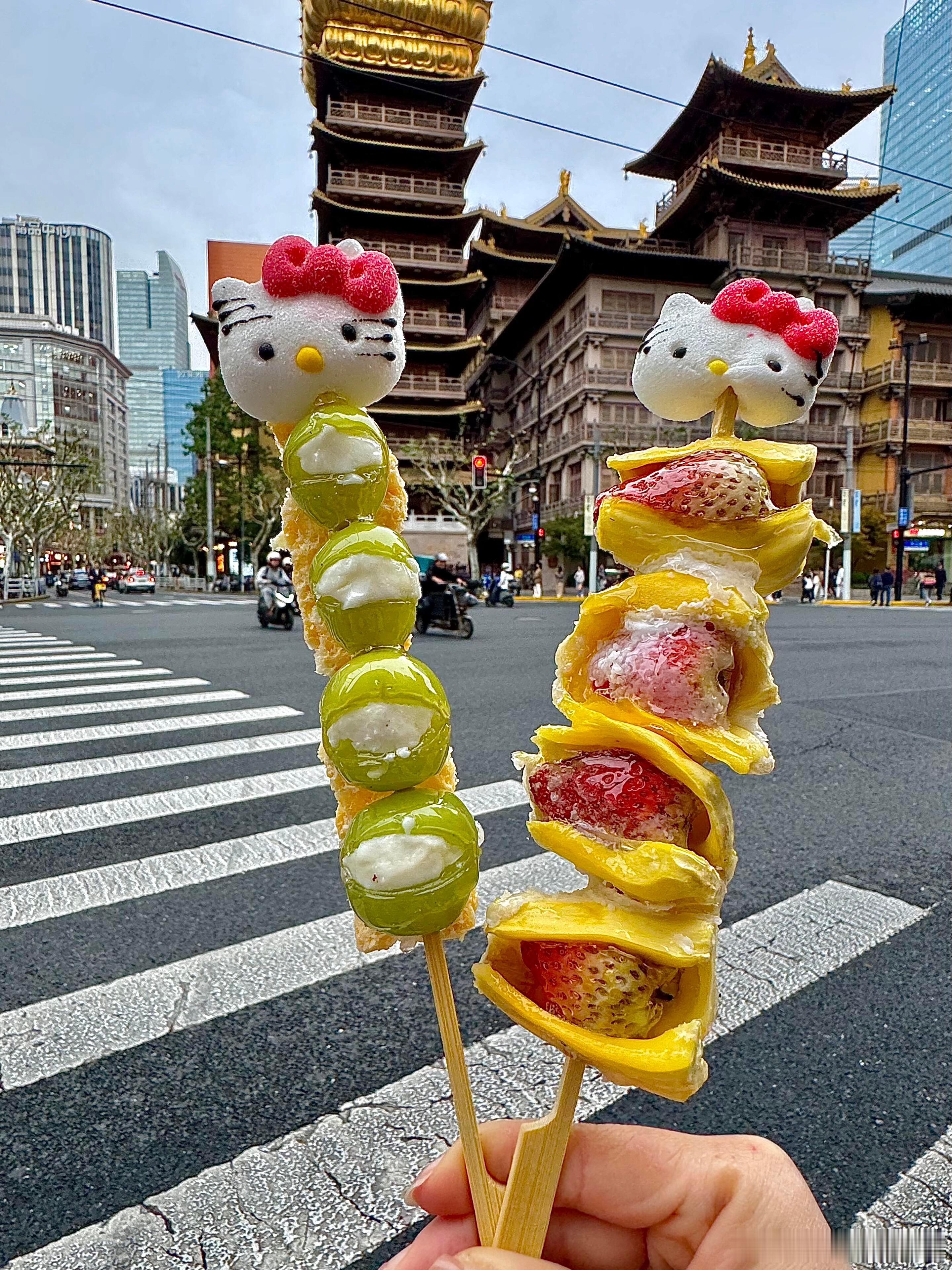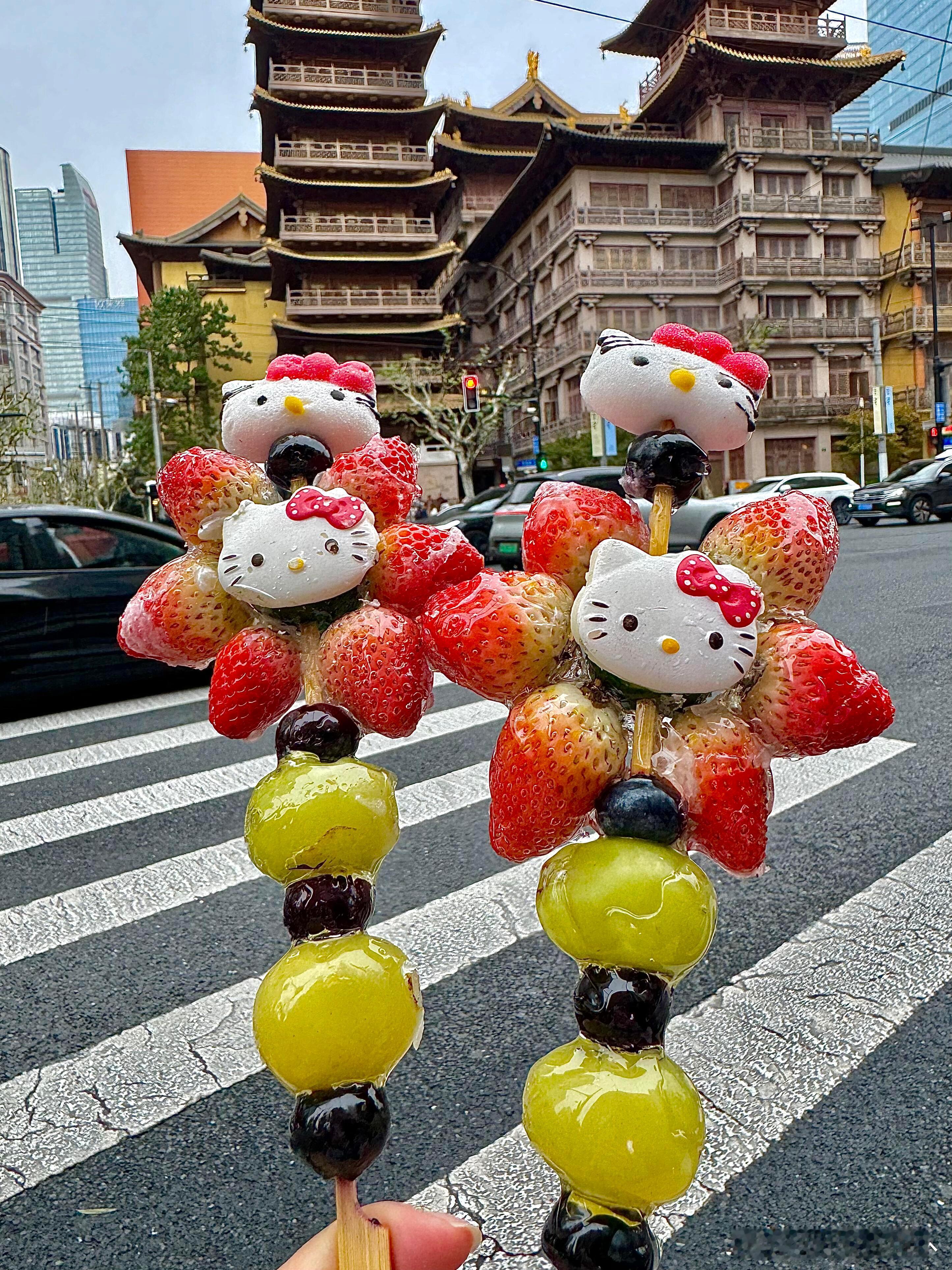 新出的!巨巨巨可爱的kitty糖葫芦🥹🥹吃到了hellokitty奶皮子冰糖葫芦真的太太太可爱啦!!!好吃爱吃🥹如果幸福是一串hellokitty糖葫芦那么此刻 我就是幸福爆炸的人固体杨枝甘露也很震撼美味!一口下去层次感很丰富店里的老北京铜锅涮肉也超好吃。。清水涮熟的羊肉+浓郁麻酱谁懂这一口的含金量!