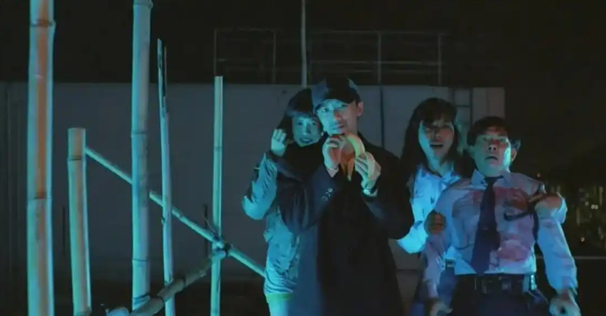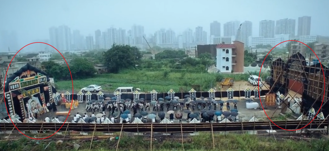 在电影《古惑仔3之只手遮天》有个名场面,就是黑帮老大“骆驼”的葬礼,当时这个竹脚手架确实给我带来了震撼,既有烟火气又特别有特色。