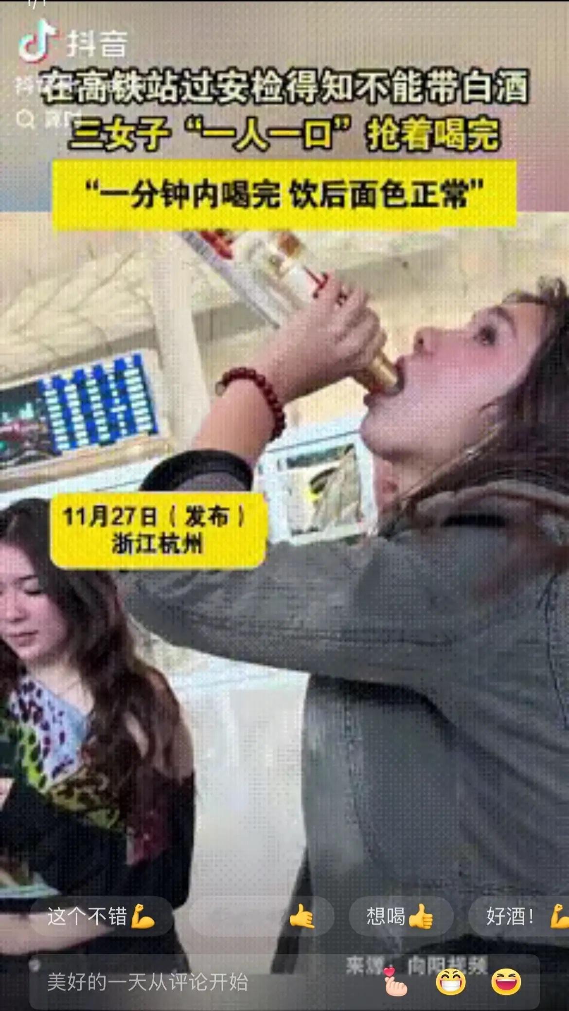 哈哈!三位都是酒蒙子! 浙江杭州,三名女子去高铁站乘车,可过安检时却被拦住,因为包里面有半瓶白酒没办法带上车,可三人也没打算扔,直接轮流喝了起来,一分多钟就把半瓶白酒全部干掉了。网友:这酒不喝白瞎了 安检口的工作人员都看傻了,手里的安检仪都忘了操作,周围排队的乘客更是炸开了锅。有人举着手机录像,有人忍不住笑出声,还有阿姨着急地喊:“姑娘们慢点喝!空腹喝酒伤胃啊!” 其中穿粉色外套的女生抹了抹嘴角,把空酒瓶递给安检员,带着点酒气笑道:“没事没事,这酒是朋友送的,几百块一瓶呢,扔了太可惜。” 另一个扎马尾的女生还打了个饱嗝,拉着同伴就往候车厅跑:“快走快走,别耽误上车!” 没人知道,这半瓶白酒背后还有段小插曲。三人是从小一起长大的闺蜜,这次是结伴去外地旅游,出发前朋友特意送了瓶高档白酒,说让她们路上小酌几杯。出发时急着赶车,忘了高铁不能带白酒的规定,直到安检被拦才慌了神。“当时脑子里就一个念头,不能扔!” 后来其中一位女生在采访中说,“那瓶酒是朋友的心意,而且确实不便宜,我们平时也不怎么喝酒,想着干脆喝完再走,反正就半瓶,应该没事。” 可她们不知道,这种行为藏着多大的安全隐患。铁路部门早就明确规定,乘坐高铁时,散装白酒严禁携带,瓶装白酒超过500毫升也不允许上车,之所以有这样的规定,是因为白酒属于易燃物品,在人员密集的高铁上,一旦发生泄漏或火灾,后果不堪设想。更让人担心的是,三人空腹喝酒,而且喝得又急,很容易引发头晕、恶心等不适,要是在高铁上突发状况,不仅影响自己,还会耽误其他乘客。 有经常坐高铁的乘客说,之前在安检口也见过类似的情况,有人带了打火机被拦,当场就把一整包打火机都扔了,还有人带了超过容量的指甲油,二话不说就送给了安检员。“相比之下,这三位女生确实有点冲动了。” 一位铁路工作人员表示,“遇到这种情况,其实可以选择托运,或者送给送行的朋友,没必要冒着伤身体和违反规定的风险当场喝完。” 网友们的评论也是褒贬不一。有人觉得“这操作太牛了,果然是性情中人”,还有人调侃“这就是传说中的‘酒品见人品’,不浪费一点粮食”,但更多网友表示不赞同:“为了几百块的酒,拿自己的安全开玩笑,太不值了”“高铁的规定都是为了大家的安全,不能因为舍不得就无视规则”。甚至有网友翻出了之前的案例,有乘客在高铁上喝酒闹事,被铁路警方处以罚款和限制乘车的处罚,提醒这三位女生以后要注意。 其实,类似的“奇葩”行为在高铁站并不少见。有人为了带水果刀上车,把刀藏在鞋底;有人为了带宠物,把小猫小狗装在行李箱里;还有人因为赶不上车,强行冲闯安检口。这些行为看似是“小事”,实则违反了铁路运输安全管理规定,不仅会影响车站的正常秩序,还可能给其他乘客带来安全隐患。铁路部门之所以严格检查,就是为了保障每一位乘客的出行安全,这需要我们每一个人的理解和配合。 三位女生的行为,虽然没有造成严重后果,但也给我们提了个醒。出门在外,一定要提前了解相关的交通规则,不要抱着侥幸心理无视规定。遇到问题时,要冷静处理,多想想安全隐患,而不是只图一时方便或舍不得财物。就像那半瓶白酒,虽然扔了可惜,但比起自己的安全和公共秩序,实在不值一提。 遵守公共规则,是每个公民的基本义务。高铁作为大众出行的重要交通工具,其安全管理离不开每一位乘客的配合。希望这三位女生能吸取教训,以后出行前做好准备,也希望其他乘客能引以为戒,自觉遵守铁路规定,共同维护安全、有序的出行环境。 各位读者你们怎么看?欢迎在评论区讨论。