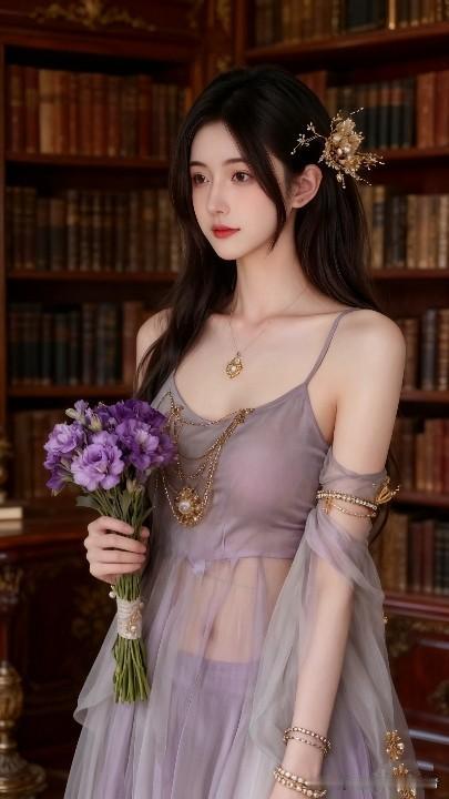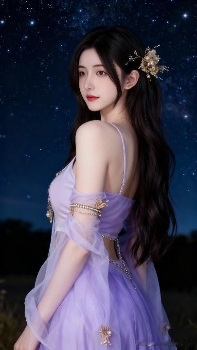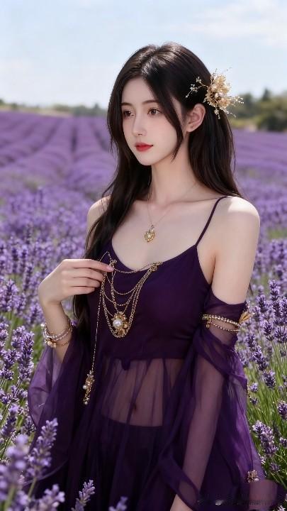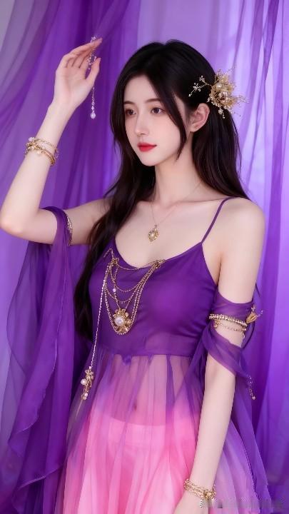 紫色长裙,宫廷风,优雅气质,金饰点缀,梦幻奢华。紫色晚礼服