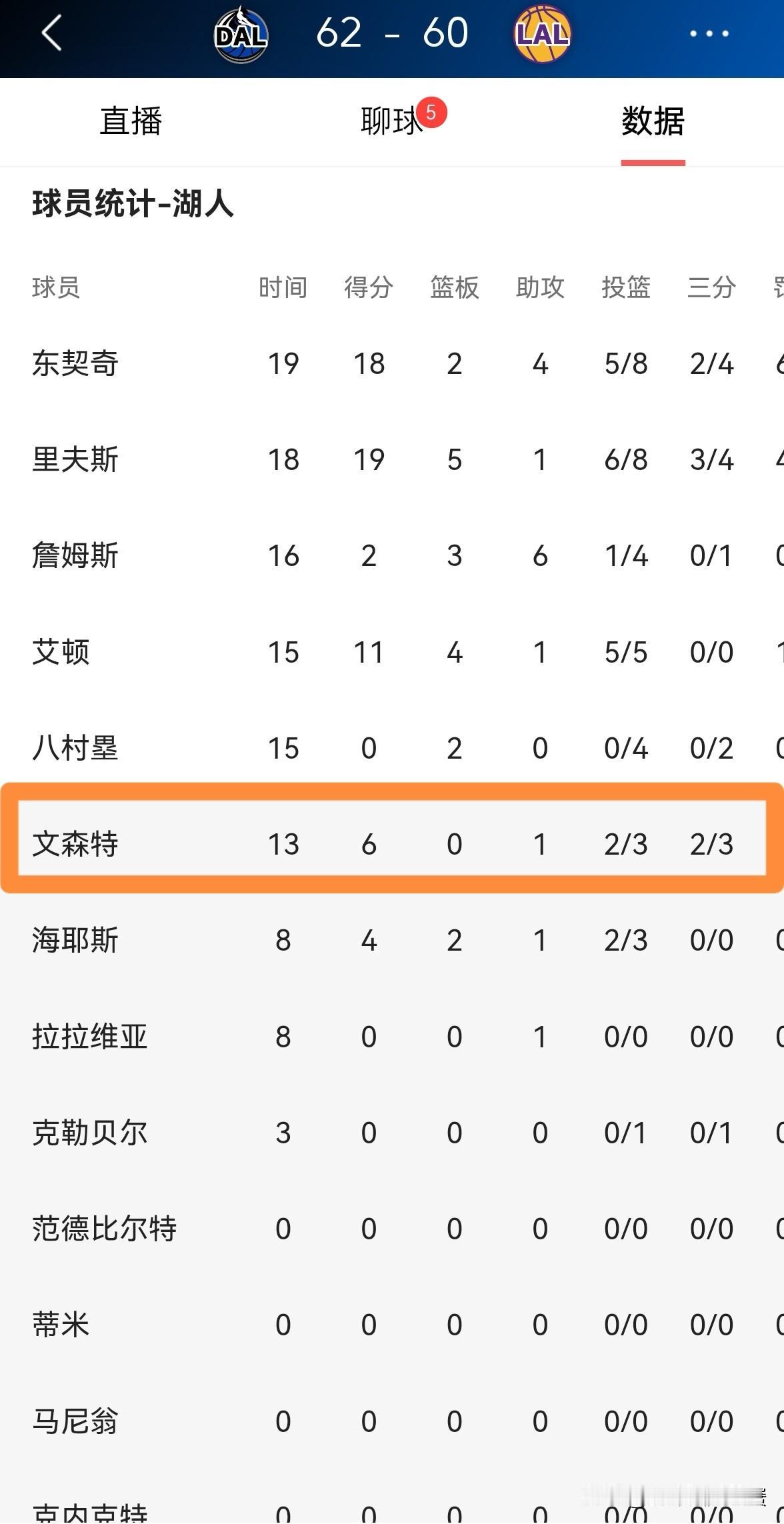 湖人大将文森特不愧是球队的替补神兵!在今天进行的湖人和独行侠的上半场比赛中,文森特替补出战13分钟,三分球3中2得到6分1助攻0失误,他的场上正负值为+4。 当文森特能够在比赛中命中三分球的时候,那么他的价值就会更高,他的球队地位也会更稳固。